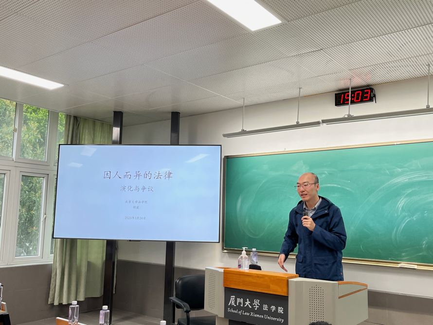 2023年3月24日下午,信实“青椒会”学术论坛“因人而异的法律——演化与争议”在厦门大学法学院A201教室顺利举行,本场讲座的主讲人是来自北京大学法学院的胡凌老师。中国政法大学法学院沈伟伟老师、厦门大学法学院的十余位青年教师和几十位同学参加了本次学术讲座。