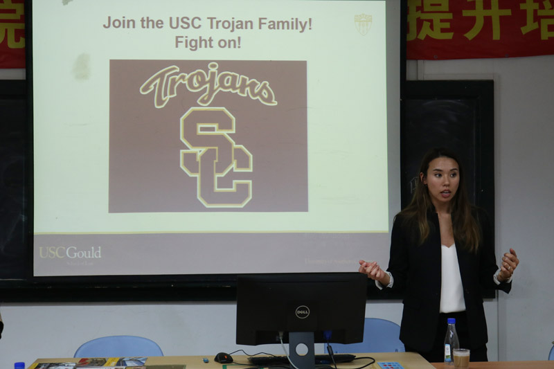 上午11时30分许,来访的黄睿敏女士和Sarah助理教授与法学院朱晓勤副院长一行举行座谈。双方就各自关心的问题作了坦诚深入的交谈,就两个法学院开展师生交流等合作事项达成了初步意向。下午4时许,Sarah助理教授在法学院B420会议室作南加州大学研究生项目宣讲。Sarah助理教授主要从校园生活、专业学习、职业发展、申请程序等方面对南加州大学研究生项目作了介绍,并就现场同学提出的问题进行解答。