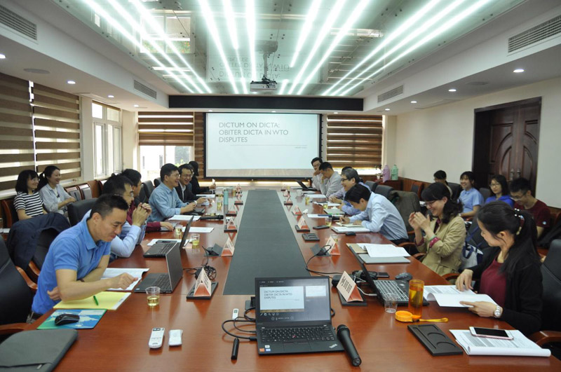 2018年4月29日上午,新加坡管理大学法学院副教授高树超做了“WTO争端解决机制中的遵循先例原则与附带意见:对上诉机构危机的比较法解读”的专题报告。厦门大学法学院蔡从燕教授主持本次专题报告。