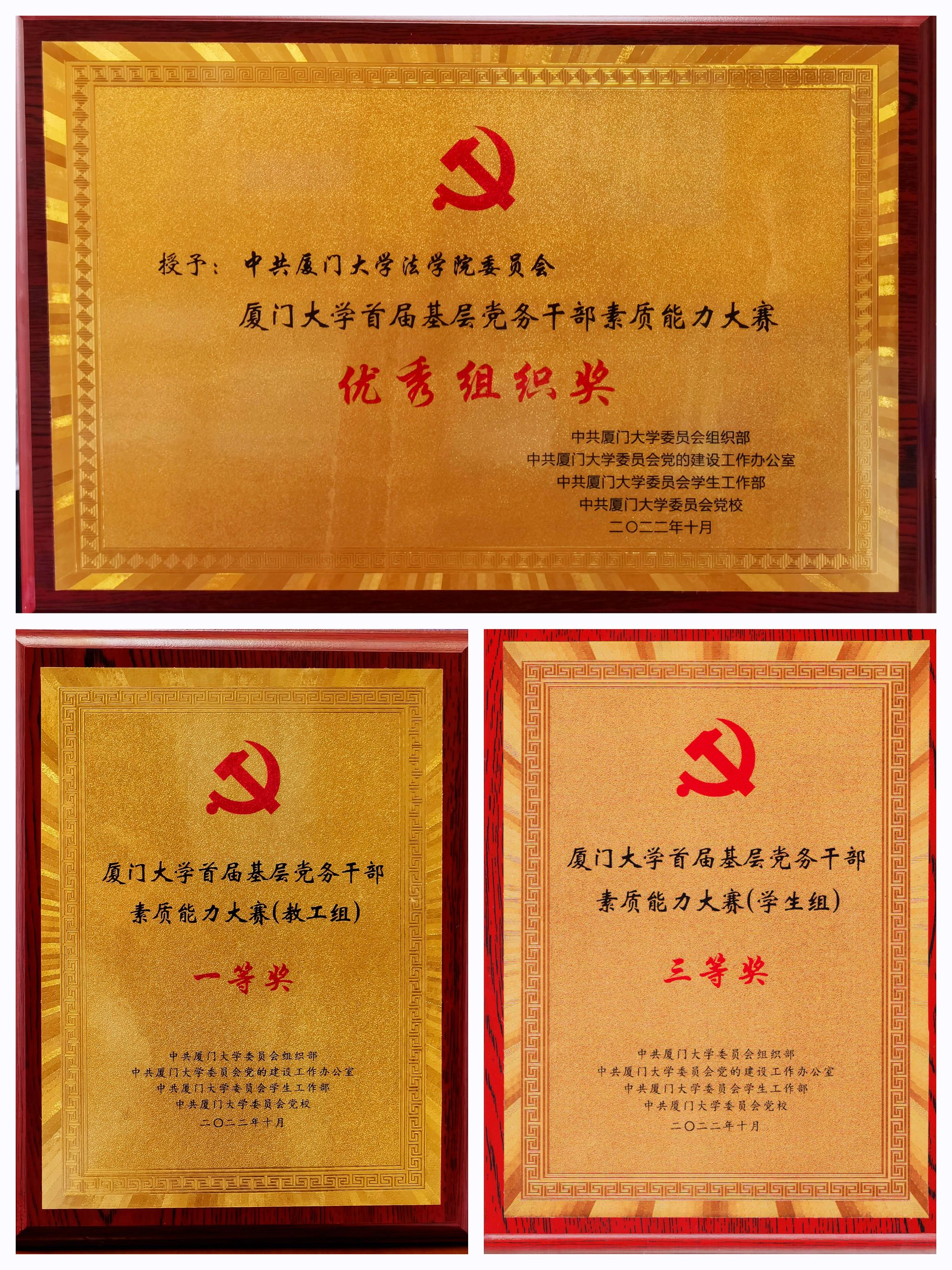 10月23日上午,厦门大学首届基层党务干部素质能力大赛(决赛)圆满落下帷幕。在本次校级比赛中,法学院教工队和学生队经过党务知识竞赛、专题党课讲授、主题党日设计、工作案例分析等项目的激烈角逐,双双晋级决赛斩获佳绩,教工队获一等奖,学生队获三等奖,法学院党委荣获“优秀组织奖”。
