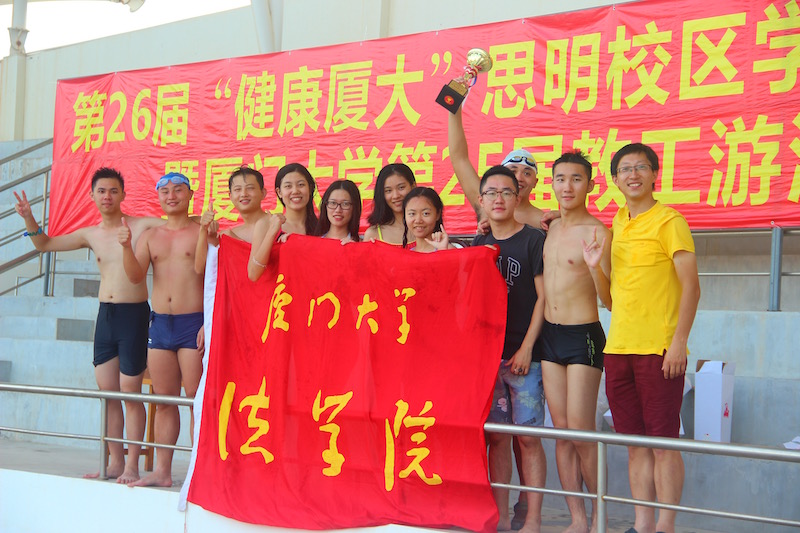 2017年6月24日,由厦门大学体育教学部主办的第26届“健康厦大”思明校区学生游泳运动会在厦门大学(思明校区)王清明游泳馆拉开帷幕。我院派出6名男运动员、4名女运动员组成代表队参加了本次比赛中的10个单人项目和4个团体项目。院团委书记高斌老师亲临现场,为运动员们加油助威。
