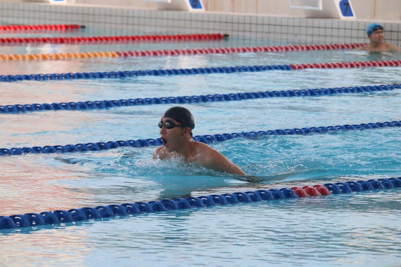 在比赛正式开始前,运动员们进行了适应性训练。骄阳似火,游泳馆温度颇高,但丝毫不影响他们的热情。率先出战的我院博士生张金矜夺得开门红,轻松斩获女子50米蝶泳第1名和50米自由泳第2名。而博士生屈舒阳以1分35秒83的成绩获得男子100米蛙泳第1名,并一举拿下50米蛙泳第3名。硕士研究生王红鑫夺得男子50米自由泳第2名和100米自由泳第3名。