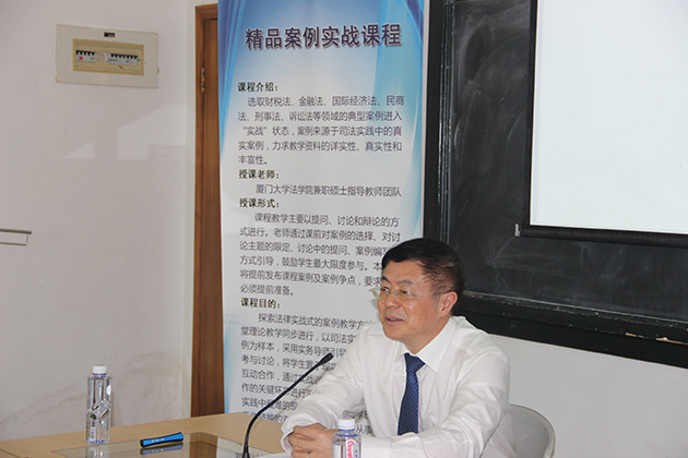 2016年4月28日,由厦门大学法学院主办、大学生法律援助中心承办的《精品案例实战课程》第七讲在法学院B520成功举办。此次课程邀请了福建天衡联合律师事务所主任、高级合伙人孙卫星律师担任主讲人。