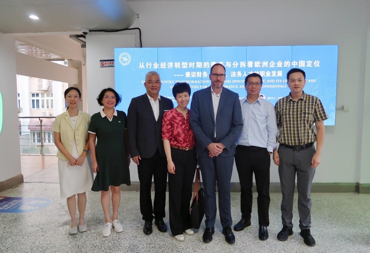 2023年10月26日下午,舍弗勒大中华区首席财务官尹嘉侠(Francesco Ingarsia)先生、大中华区总法律顾问聂鑫先生、大中华区税务与海关事务总监綦炜女士、环球律师事务所合伙人赵德铭博士来访学院,并做主题为“从行业经济转型时期的兼并与分拆看欧洲企业的中国定位——兼谈财务、税务、法务人才的职业发展”的讲座。学院党委书记何丽新等参加接待。