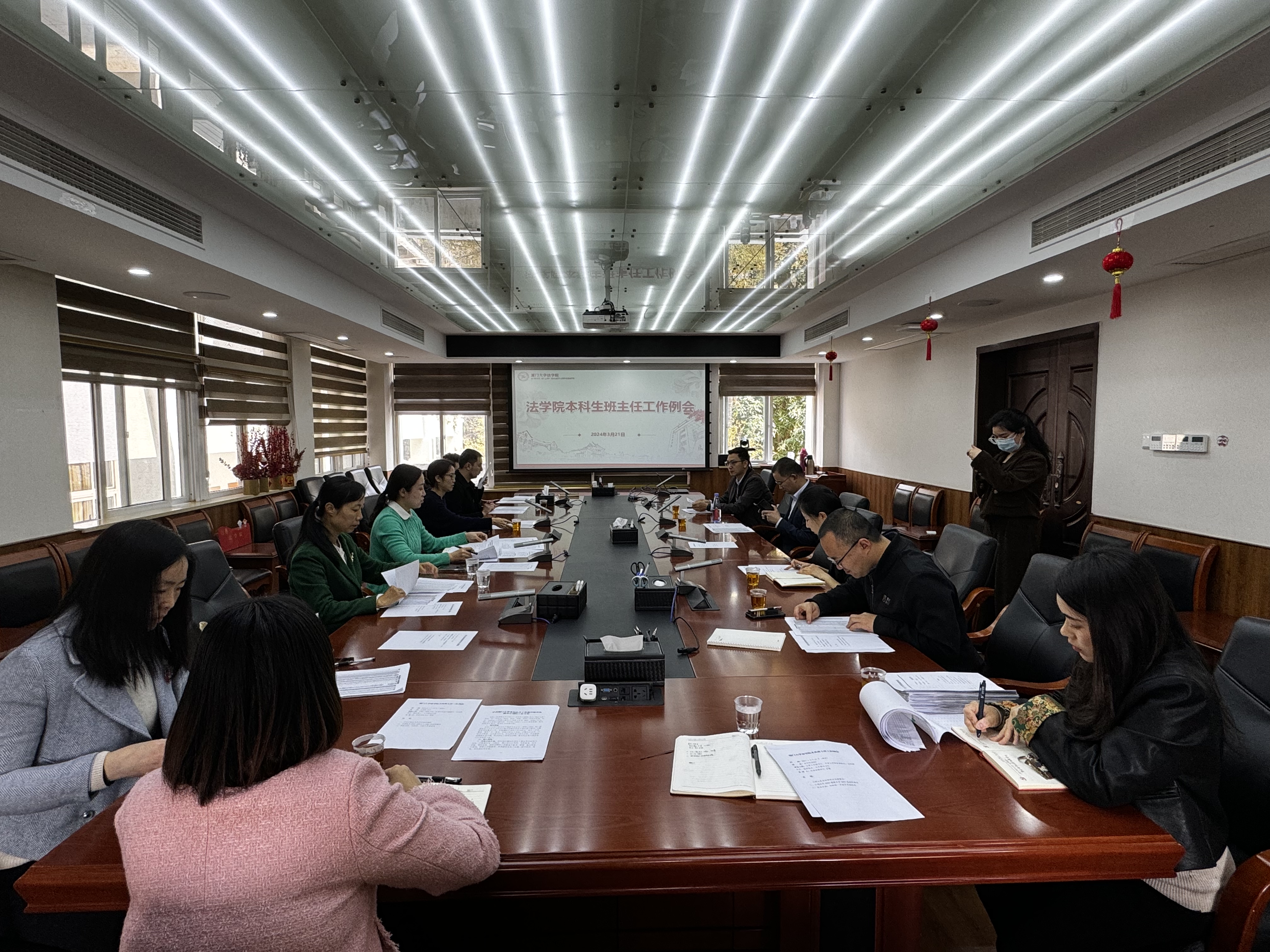 为保障本科生教育质量、提升本科生班主任制度的执行成效,3月21日中午,法学院在B220会议室召开本科生班主任工作例会。法学院副院长朱晓勤、党委副书记吴荻、本科生辅导员、教学秘书及各位本科生班主任老师出席会议。会议由学院党委副书记吴荻主持。