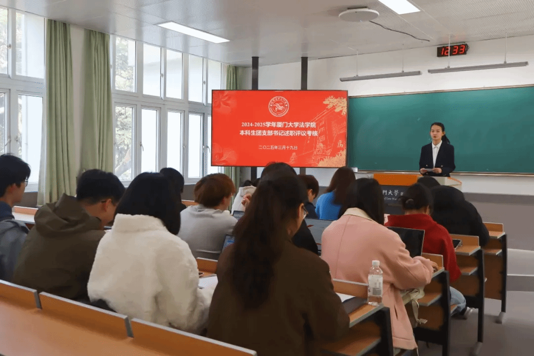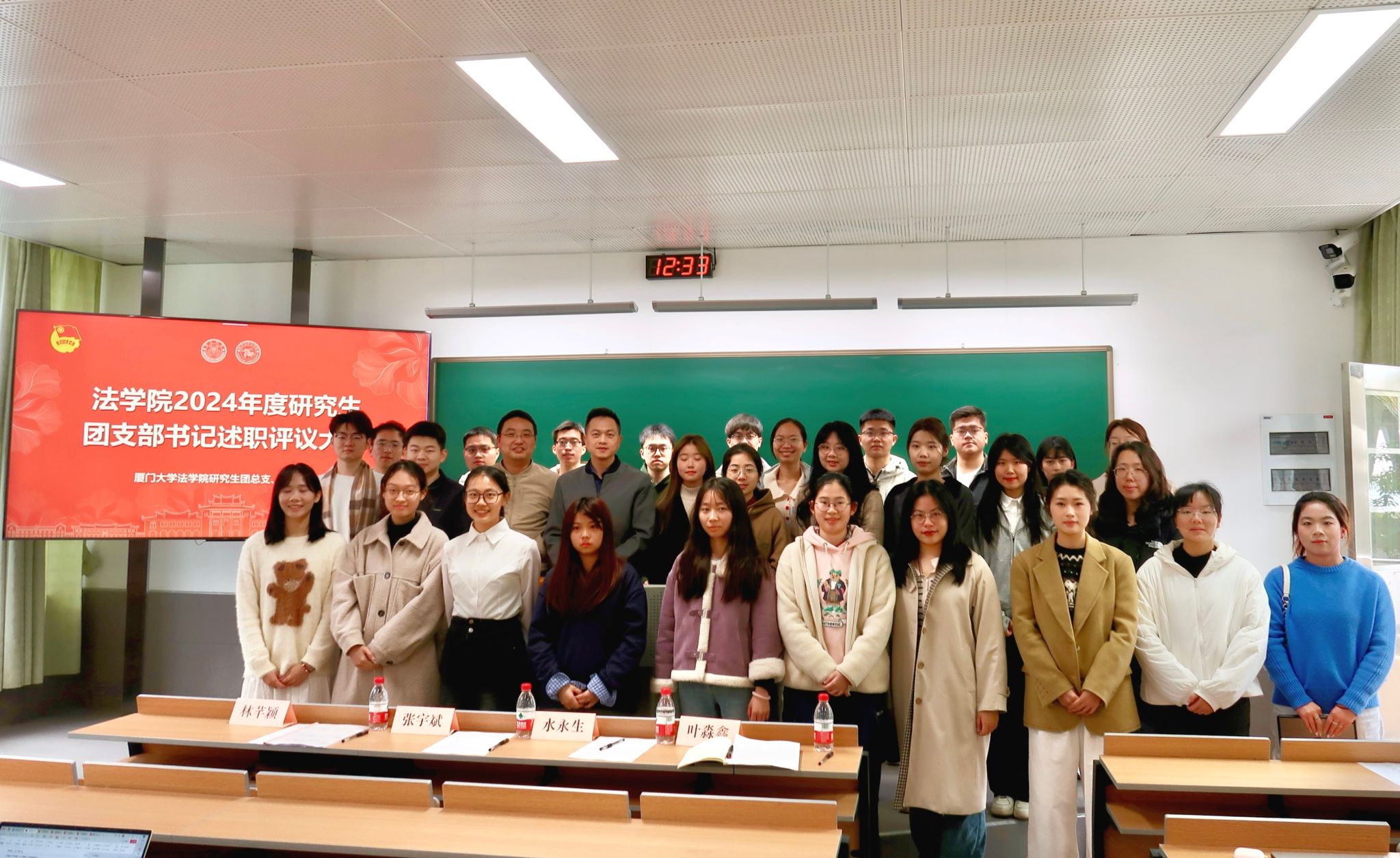 为深入学习贯彻党的二十大和二十届三中全会精神,进一步学习宣传贯彻全国教育大会精神和团十九大精神,纵深推进基层团组织建设,全面提升组织效能,法学院于近期组织召开研究生、本科生团支部书记述职评议考核大会。法学院党委副书记吴荻、张宇斌,团委书记黄伟彬,团委副书记水永生、蔡庆淞,辅导员叶淼鑫和林芊颖出席,各团支部负责人及团员青年代表参加会议。