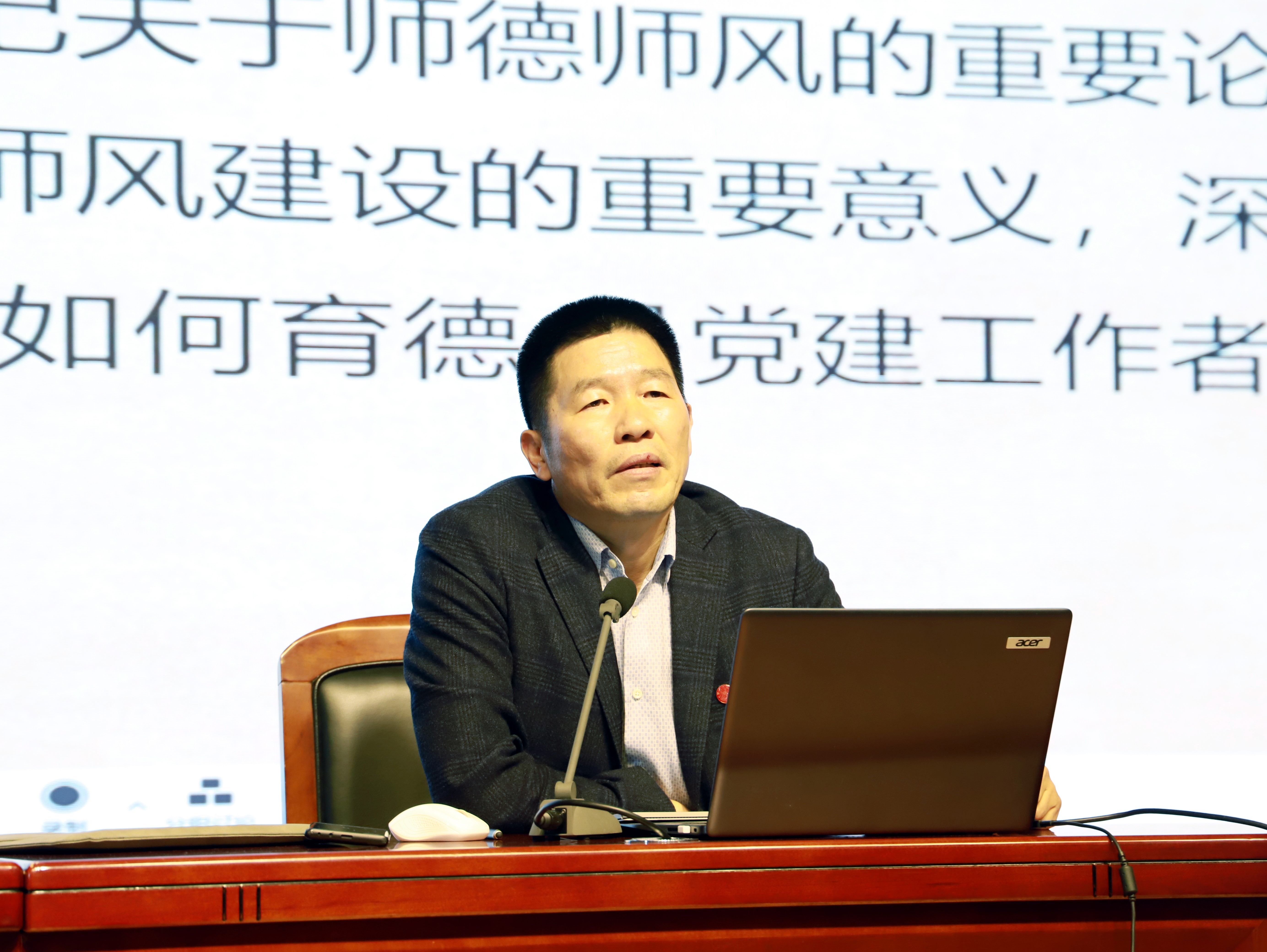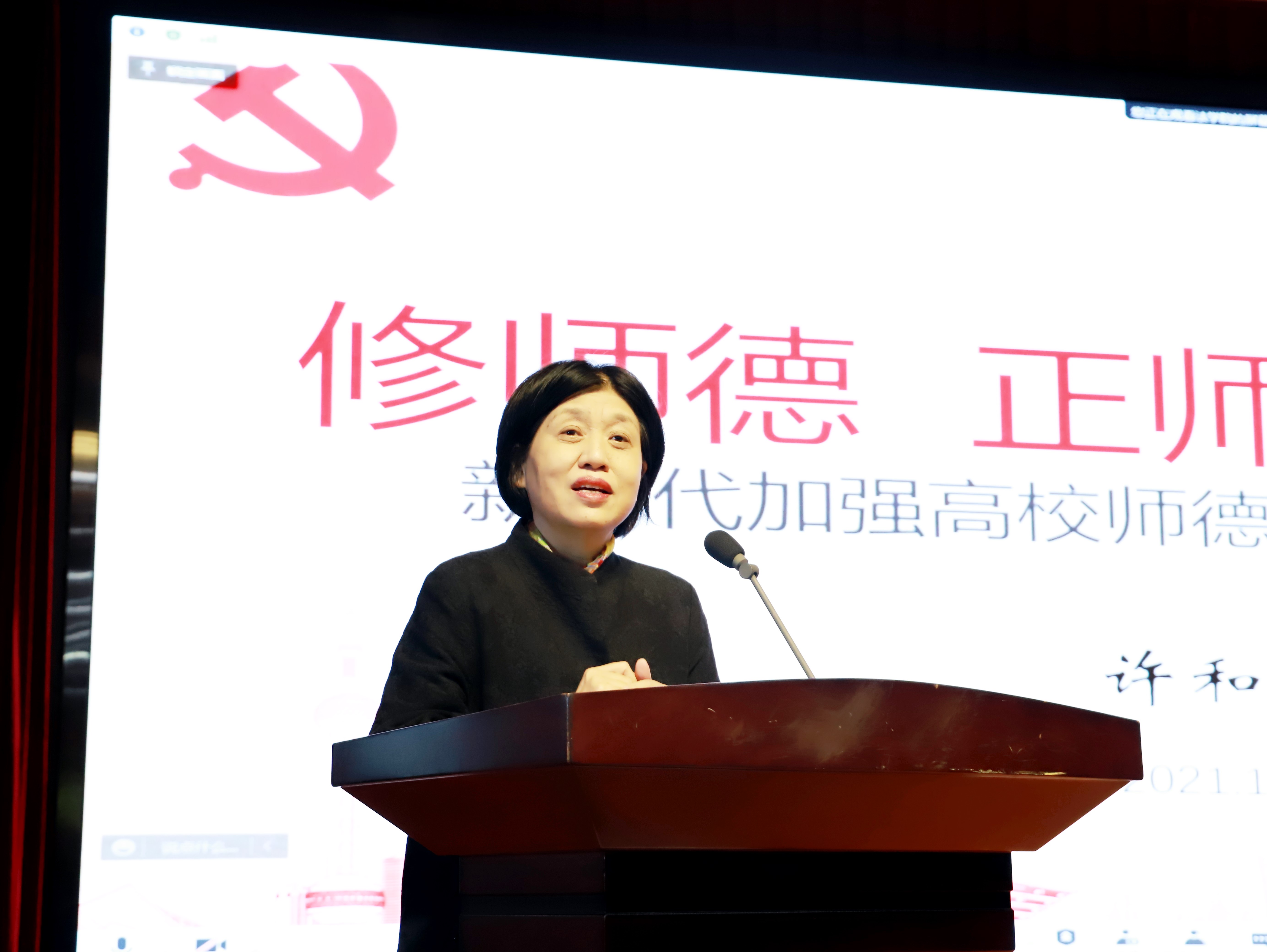 许和山书记从学习贯彻习近平总书记关于师德师风的重要论述讲起,从“中华优秀传统文化中的师德师风底蕴、新时代高校师德师风建设的深刻内涵和根本遵循、当前高校师德师风失范问题的剖析、推进高校师德师风建设的实践思考”四个方面层层推进,带领与会人员深刻认识新时代加强高校师德师风建设的重要意义,探究何为师德、教师何以立德、如何育德等重要问题。