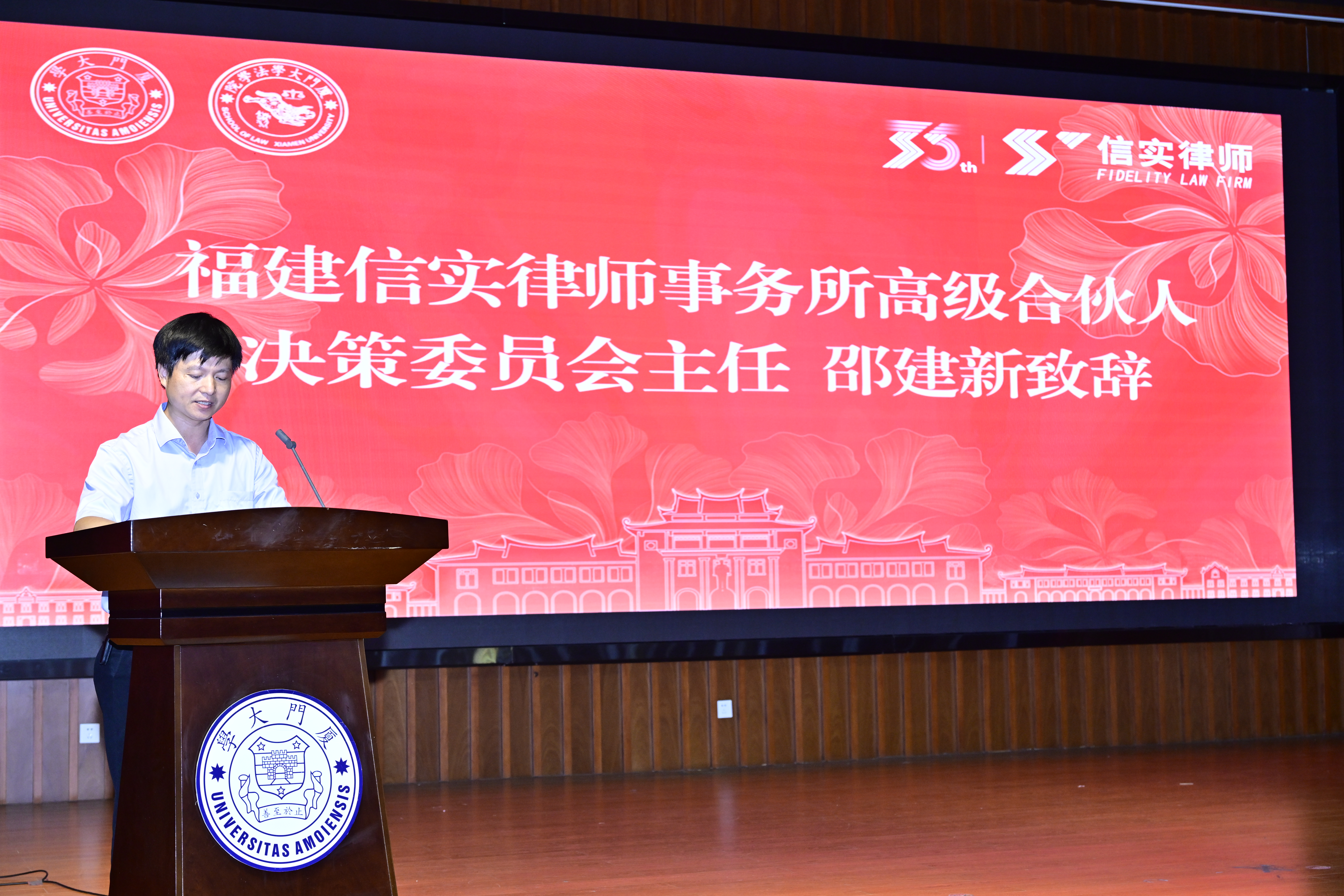 福建信实律师事务所高级合伙人、决策委员会主任邵建新在致辞中回顾了“信实杯”全国大学生模拟法庭辩论赛的发展历程,表示福建信实律师事务所将一如既往的秉持感恩之心回馈社会,深入推动律所与法学院校在法学理论与实务方面的研究和实践,共同提升法学人才的培养质量。