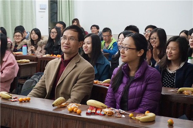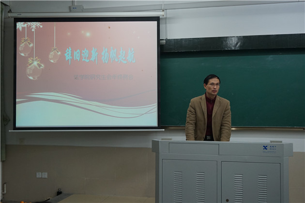 首先是工作总结环节。研会主席汪雯为本环节做了开场白。她对研会半年来的工作情况进行了高度总结,对各个部门的良好表现加以认可。她表示新的一年意味着开始与朝气,也意味着总结与沉淀,希望研会各成员都能在这个平台上充分展示自己的能力,并结下终身的友谊。接着,三位分管研会工作的副主席杨军、喻皓、庄哲分别就其所分管的部门的工作作了详细汇报,并对新的一年的工作做出了展望。他们汇报的丰硕工作成果赢得了场下雷鸣般的掌声。最后,郭书记做了本次例会的总结。回顾过往,他对研会过去半年来的工作给予了表扬,也指出了其中的不足;对于新的一年的期望,他要求研会在今后的工作中不仅要继续改进工作方式,更要更新工作内容,想出更多的适合同学们的活动,充分体现出研究生会自我教育、自我管理、自我服务的理念。
