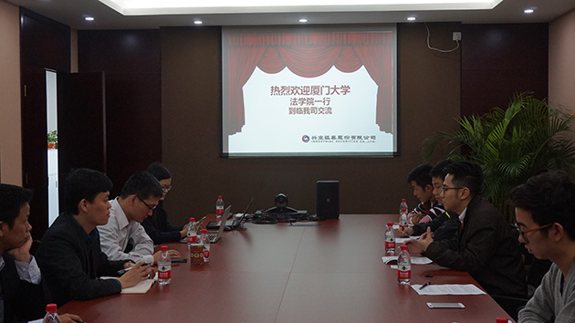 上午9时许,“法·商观察”调研队师生一行抵达兴业证券股份有限公司厦门分公司,受到了分公司总经理助理黄剑、机构业务部副总经理张明取、项目经理会计师陈晓红、项目经理律师吕文君等公司领导的热情接待。随后,公司领导们同法学院师生召开座谈会,探讨关于“新三板”的实务问题。此外,兴业证券还特别邀请到北京大成(厦门)律师事务所的彭燕婷律师出席了本次座谈会。