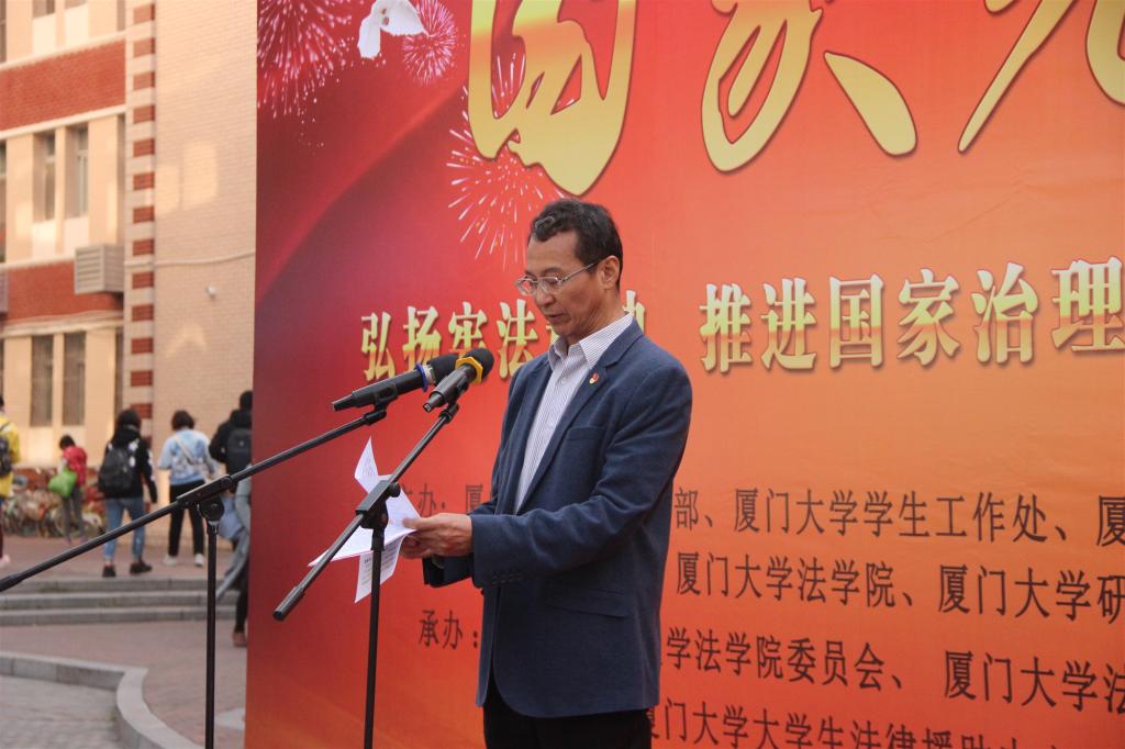 2019年12月4日上午,为增强宪法意识,弘扬宪法精神,树立宪法权威,加强宪法实施,深入学习宣传党的十九届四中全会精神,全面推进依法治国,厦门大学2019年“国家宪法日”普法宣传活动在三家村广场隆重举行。