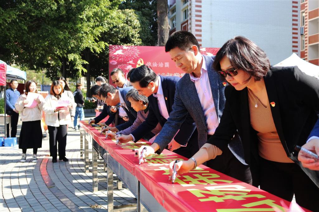 宣誓仪式后,现场领导和全体师生在“弘扬宪法精神,推进国家治理体系和治理能力现代化”横幅上签名,表达增强宪法意识、捍卫宪法尊严的坚定决心。