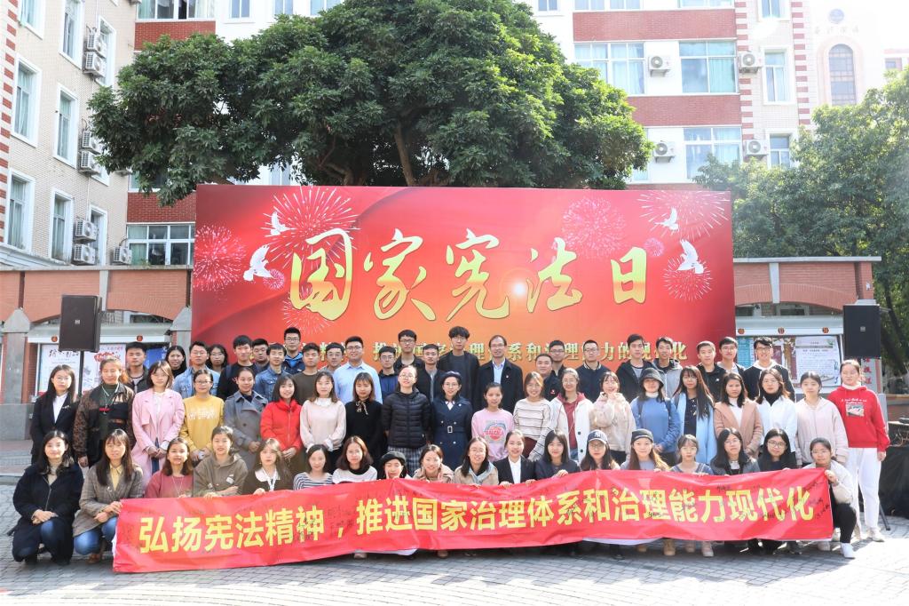 活动开始,赖虹凯副书记发表讲话。他强调全校师生要深入学习贯彻习近平总书记关于宪法的重要论述,深刻认识宪法的重要地位和重要作用,切实尊崇宪法、学习宪法、遵守宪法、维护宪法;要把宪法学习宣传教育与坚持和加强党的领导,与爱国主义教育、理想信念教育、社会主义核心价值观教育紧密结合起来,厚植爱国主义情怀,凝聚起为中华民族伟大复兴中国梦不懈奋斗的力量;要深入学习领会党的十九届四中全会精神,把弘扬宪法精神与全面依法治校紧密结合起来,不断推进学校治理体系与治理能力现代化,推动依法治校向纵深发展。