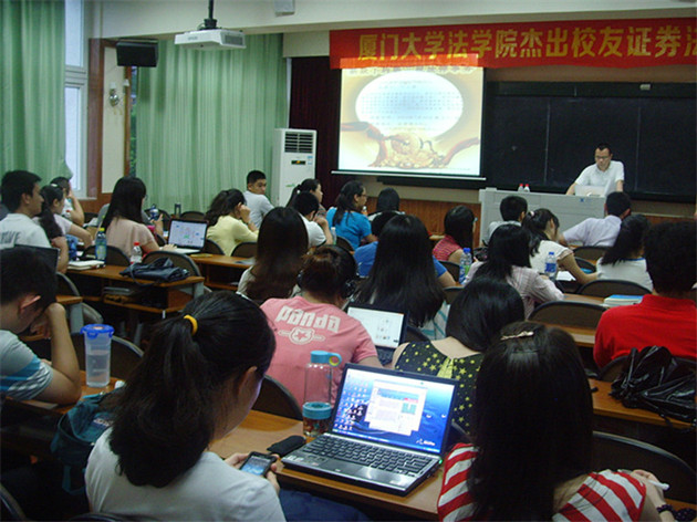 7月10日19:00,由厦门大学法学院主办、法学院研究生会承办的法学院杰出校友证券法系列讲座第三场在A302教室隆重开讲。本场讲座由厦门大学93级国际经济法专业法学硕士叶兰昌律师担任主讲,叶律师主要服务于资本市场法律事务领域,现任北京市中银律师事务所合伙人、恒泰证券、英大证券等证券公司内核委员,并兼任深圳证券交易所上市委员会委员、深圳仲裁委员会证券专业仲裁员等重要社会职务,多年专注于投融资领域的法律服务,在IPO、并购、私募、债券、票据、全国股转系统(新三板)等领域为企业的投融资提供专业法律服务。本场讲座正是围绕着“新政下的新三板法律事务”这一主题展开的。副院长何丽新老师作为嘉宾出席,并代表法学院向叶兰昌律师颁发了印有法学院logo的纪念品与荣誉证书。