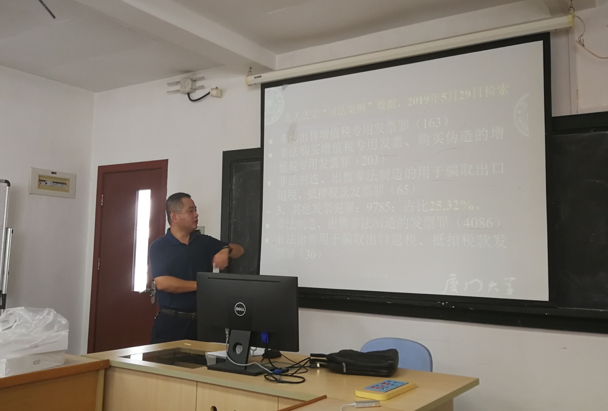 2019年5月30日,厦门大学法学院青年教职工协会主办的信实学术午餐会(第十四期)在法学院教学楼B420教室顺利举行。本次午餐会的主讲人为李刚老师,其报告主题为“税制改革背景下逃税罪手段行为争议问题辨析”。法学院的二十多位青年教职工以及几位信实律师事务所的律师参加了本次学术午餐会。