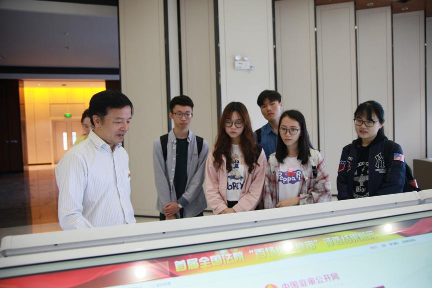 (倪法官为实践队介绍广州海事法院智慧法院建设成果)