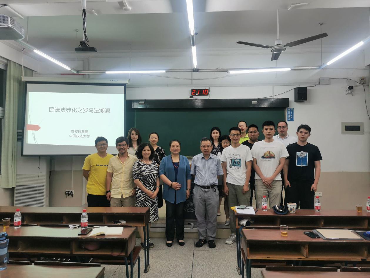 2021年5月27日晚7点,中国政法大学民商法学教授、钱端升讲席教授、北京市债法学研究会会长、全国人大法律工作委员会立法咨询专家费安玲教授做客我院,师生们期待已久的,主题为《民法法典化之罗马法溯源》的讲座在法学院A103教室如期举行。讲座由厦门大学法学院徐国栋教授主持,蒋月教授、吴旭莉副教授、齐云助理教授也出席了讲座,此外还吸引了不少研究生、本科生前来聆听,求知氛围浓厚,现场气氛甚佳。