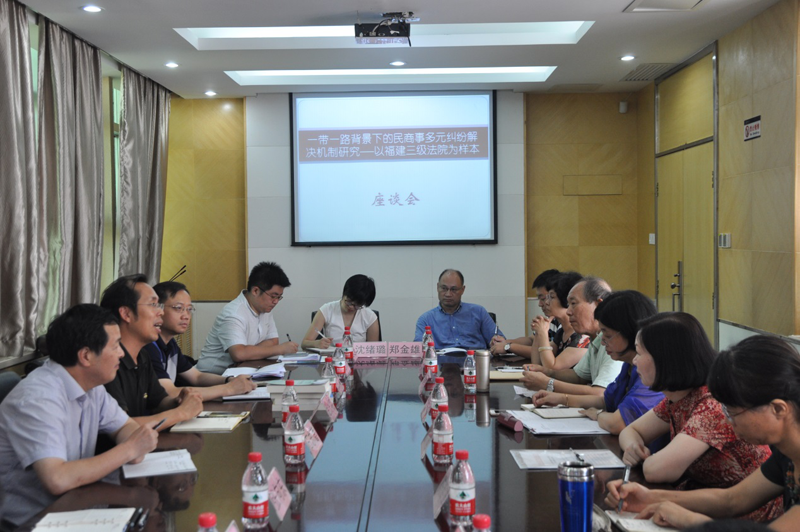 6月30日,最高人民法院机关党校2017年处级干部进修班7名学员来我院,围绕“一带一路背景下的民商事多元纠纷解决机制研究——以福建三级法院为样本”这一主题,展开座谈调研。省法院以及厦门中院相关人员陪同。宋方青院长、齐树洁教授、于飞教授、陈辉萍教授、张榕教授等参加了座谈。