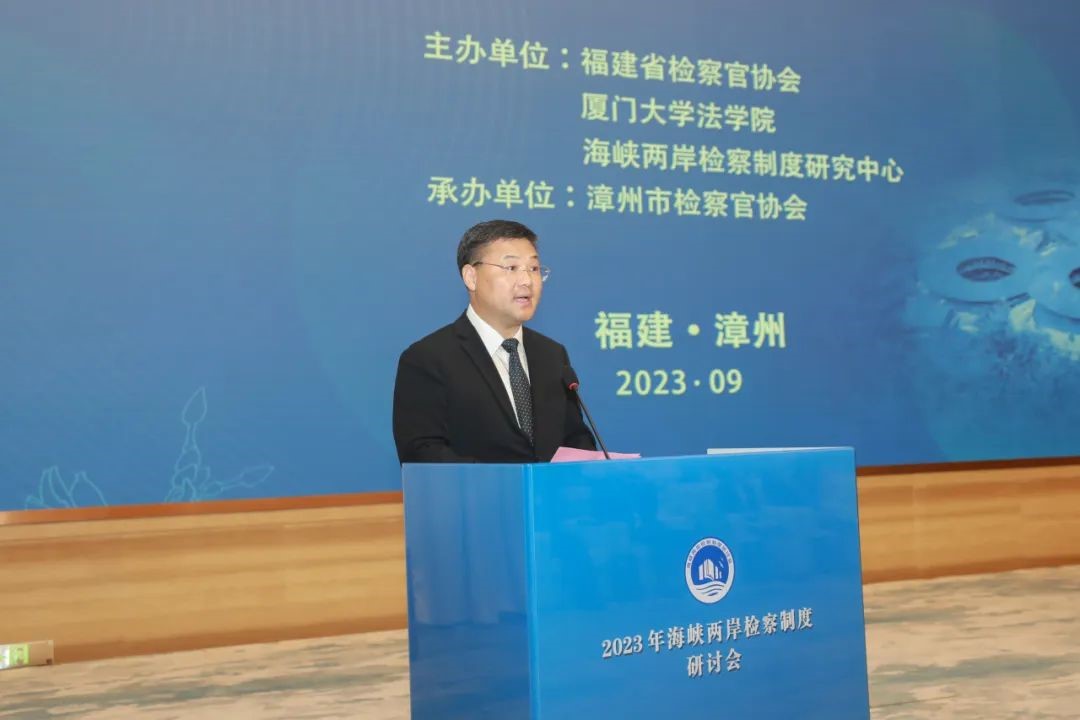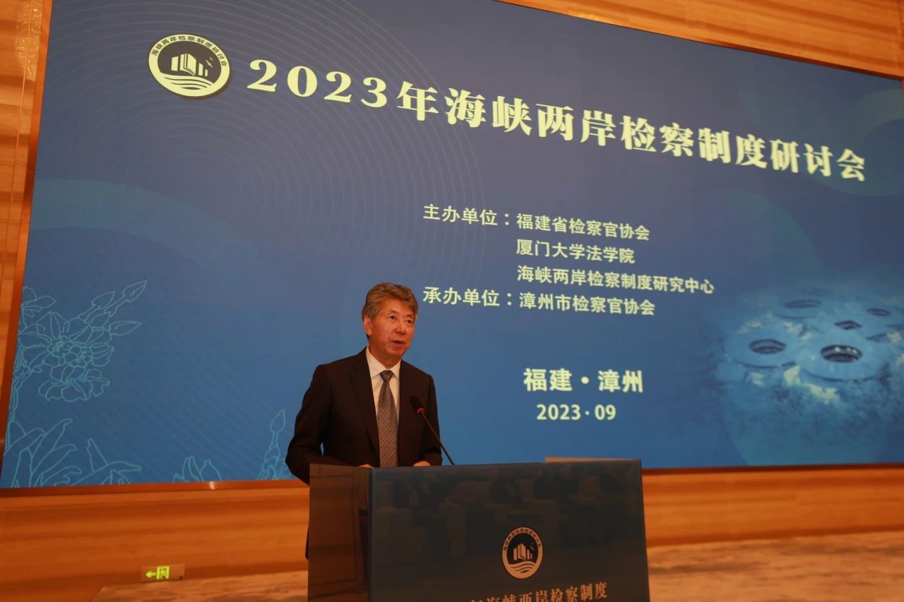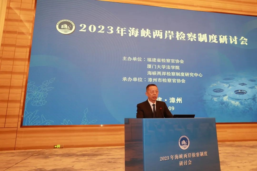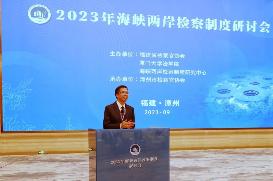 2023年9月20日,由福建省检察官协会、厦门大学法学院和海峡两岸检察制度研究中心主办的“2023年海峡两岸检察制度研讨会”于福建漳州芗江酒店成功举办。来自海峡两岸的100多名法学界、司法实务界人士参加本次研讨会。福建省检察官协会顾问侯建军主持开幕式,中国检察官协会副会长宫鸣、福建省法学会会长黄海昆、台湾海峡两岸法学交流协会监事长林辉煌、厦门大学党委常务副书记林东伟、漳州市检察官协会特邀嘉宾魏东出席会议并致辞。