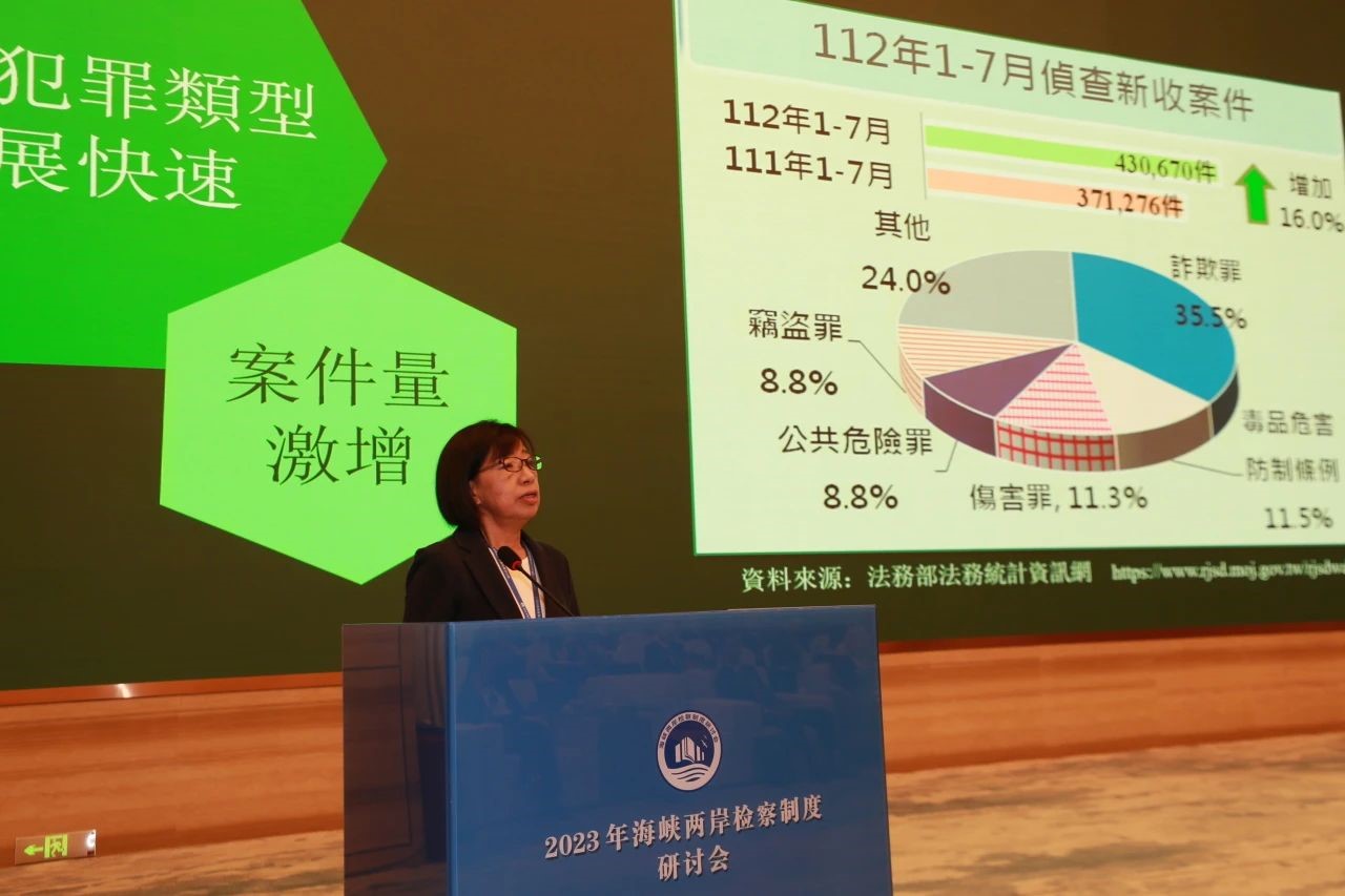 议题一为“犯罪结构变化及治理措施”,由福建省台湾法律研究院院长陈明添和台湾海峡两岸法学交流协会会员白忠志共同主持。台湾科技大学人文学院钟凤玲副教授,福建省检察官协会会员石冰莹,台湾比较刑法学会理事长李金定,泉州市检察官协会理事庄明源作为报告人先后发言,台湾海峡两岸法律交流协会顾问邱美育,中国政法大学诉讼法学研究院教授、厦门市法学会诉讼法学研究会顾问郭烁担任与谈人参与交流。