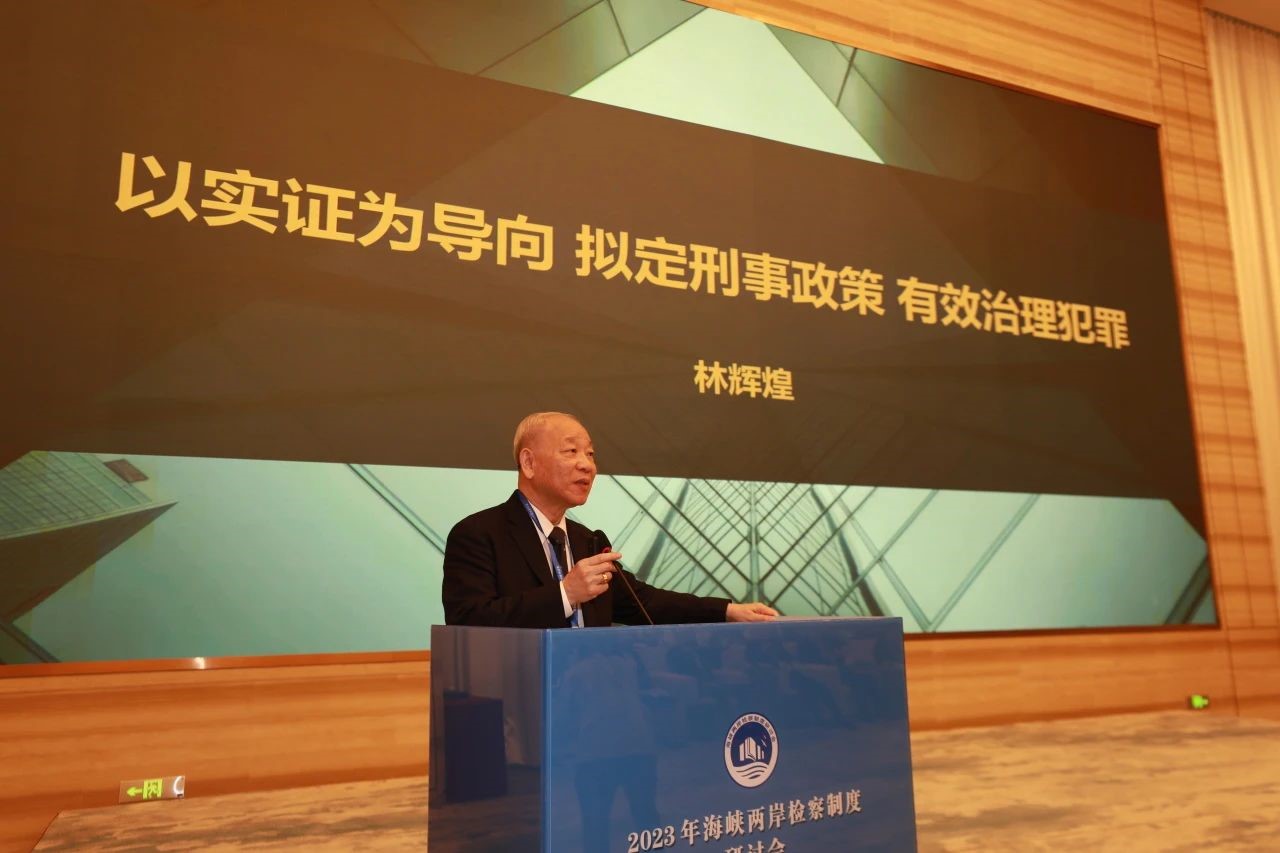 发言人台湾海峡两岸法学交流协会监事长林辉煌以《以实证为导向,拟定刑事政策,有效治理犯罪》为题,从刑事政策的意义、台湾地区刑事政策的演变、两岸刑事政策对比、犯罪结构变化与治理、宽严相济刑事政策与犯罪治理的诠解五个方面着手,指出刑事政策对于构建社会的刑事法治建设具有特别重要意义,要实现宽严相济的刑事政策,应当从观念先行、立法突破、执法跟上三个方面全方位着手,重视轻者衡轻,重者衡重,宽严相济,以宽济严,相辅相成。林辉煌表示,全球化的刑罚论述统合彰显出制度交流融合的重要性,由此呼吁两岸宽严相济刑事政策的充分交流、充分贯彻。