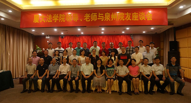 法学院90周年院庆工作紧锣密鼓地继续推进。9月4日法学院院长宋方青、副院长何丽新、党委副书记郭锦星、齐树洁教授、黄健雄教授、陈欣副教授、团委书记高斌和厦门大学校友会法律分会秘书长李毅阳等一行人前往海上丝绸之路的起点泉州,走访泉州院友与泉州院友举行座谈会。这是继走访珠海、澳门、香港、深圳、杭州、上海、青岛、北京等地院友后,学院领导和老师为了加强学院与院友之间的联系和合作,再一次共同走出去,进一步推进了法学院90周年的院庆工作。