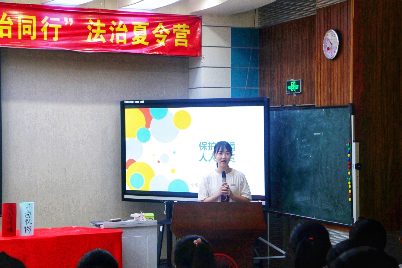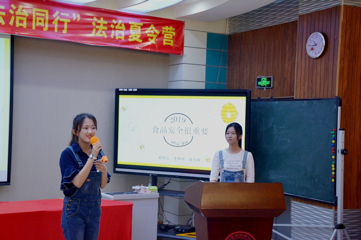 接下来,由七组同学在两天的时间内以不同的小专题向小朋友们进行普法宣传教育,主题包括宪法知识、食品安全、交通安全、网络文明、未成年人保护等与青少年成长息息相关的内容,通过课堂小游戏、播放视频短片等趣味形式,引导教授孩子们树立正确法律意识,学会运用法律武器保护自身安全。每位小老师的讲课形式丰富多样,虽风格各异,但都精彩纷呈、成果斐然,展现出了厦大学子朝气蓬勃、开朗自信的精神风貌。虽然活动时间较长,但孩子们始终专心致志地听讲,积极热情地与小老师互动,认真学习法治新知,本次法治夏令营活动取得良好效果。