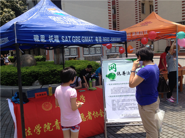 我院的网络普法宣传以展板海报的方式,列举有关互联网安全与信息保护的决定,以及刑法有关网络犯罪的相关规定。通过展示,提高大家的法律意识,了解我国保护网络信息安全与惩治网络犯罪的决心,规范自身上网行为。清朗网络空间的构建需要自我规范的同时,还需要自我保护。于此,我院志愿者现场提供法律援助,解答广大师生关于网络信息安全的法律问题,旨在达成知法、守法的同时,亦学会懂法、用法。