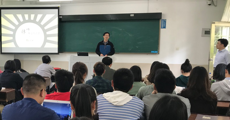 其次,他向同学们简要介绍了通力律所的相关情况,通力会为初级律师安排多种多样的入职培训,训练其专业能力。他强调律师是一个服务行业,除了专业知识,沟通能力、工作态度也同样重要,并且表达了希望为通力律所吸纳更多的人才的意愿。