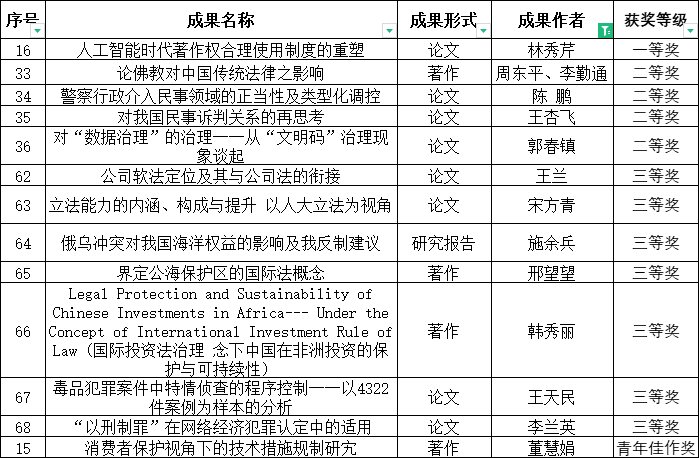 11月16日,福建省社会科学优秀成果评奖办公室公示了福建省第十五届社会科学优秀成果评奖结果。法学院共有13项成果入围(含一等奖1项,二等奖4项,三等奖7项,青年佳作奖1项),入围数量创历史新高。