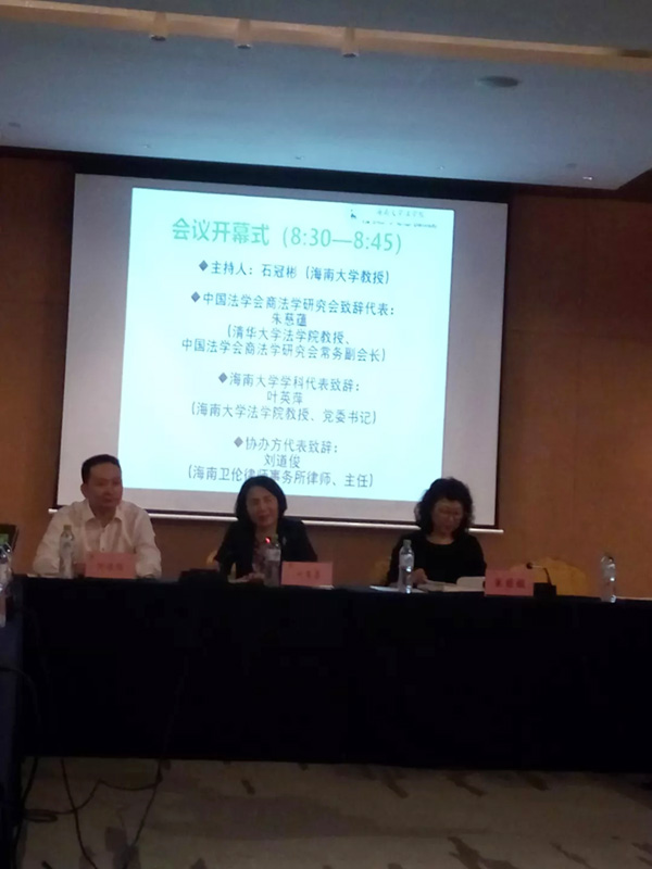 2018年11月30日至2018年12月2日,由中国法学会商法学研究会、海南大学联合主办,具体由海南大学法学院承办,海南卫伦律师事务所协办的海南大学第二届“中国商法学冬季论坛”研讨会在海南文昌顺利召开。来自北京大学、清华大学、吉林大学、西南政法大学、中国政法大学、华东政法大学、西北政法大学、中山大学、厦门大学、湖南大学、华东师范大学、郑州大学、广州大学、南京航空航天大学、国家检察官学院、河南财经政法大学、澳门大学、中国社会科学院、四川省社会科学院、海南大学、《中国法学》杂志社、《法学论坛》杂志社、《东方法学》杂志社、《暨南学报》杂志社、海南卫伦律师事务所等包含高等院校、科研机构、期刊杂志社和实务部门近30家单位的60余名代表参加了此次会议。厦门大学法学院金融法研究中心博士生温长庆受邀参会,并向会议作了题目为《立法论视角下公司越权对外担保效力判断规则的反思与重构》的报告。