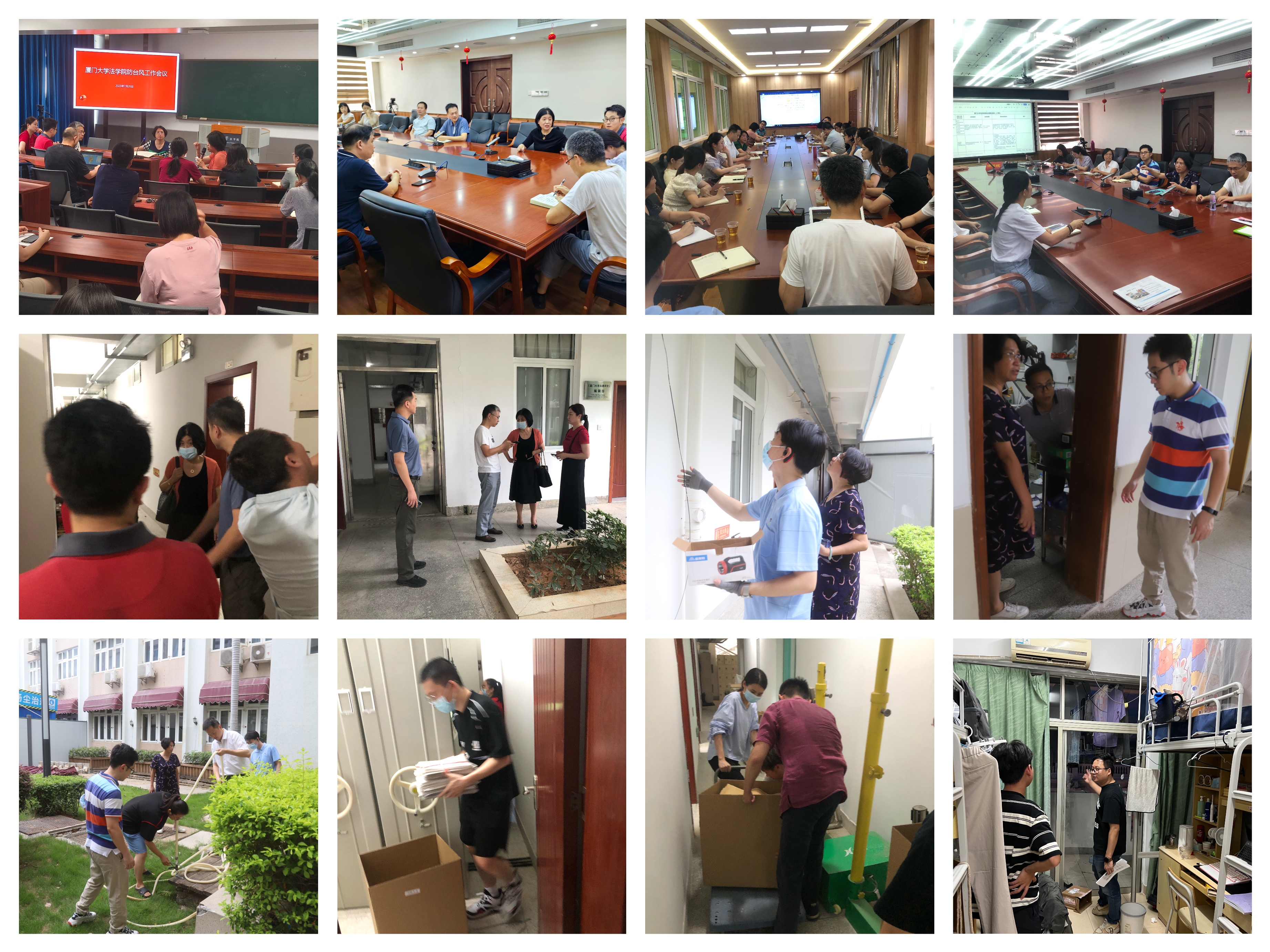 在防抗台风前期,学院成立防台工作领导小组,压紧压实工作责任,有效地进行调度指挥。多次召开专项工作会议,部署系列防台举措。学院建立防台防汛工作台账,构建台风实时信息跟踪与通报机制,发布温馨提示、安全隐患排查清单、防抗措施清单、防御物资清单等,责任到人,逐一落实。党政领导深入一线,排查各项风险隐患,关心帮扶离退休老同志,组织各类档案转移,辅导员逐间走访学生宿舍进行隐患排查及安全教育,摸排离厦教职工行程动态并进行安全提醒,组织社会培训班学员有序离厦并协助妥善安置滞厦学员……