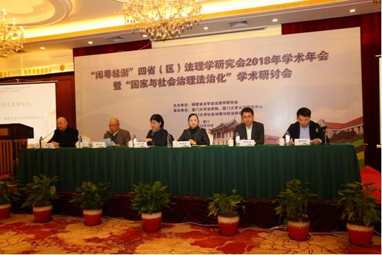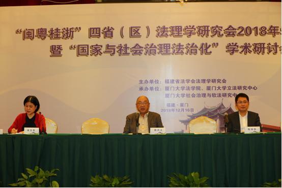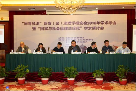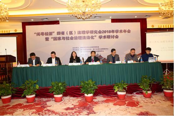 2018年12月16日,由福建省法学会法理学研究会主办、厦门大学法学院、厦门大学立法研究中心、厦门大学社会治理与软法研究中心承办的“闽粤桂浙”四省(区)法理学研究会2018年学术年会暨“国家与社会治理法治化”学术讨论会在厦门市亚洲海湾大酒店多功能会议室顺利举行,并圆满落幕。