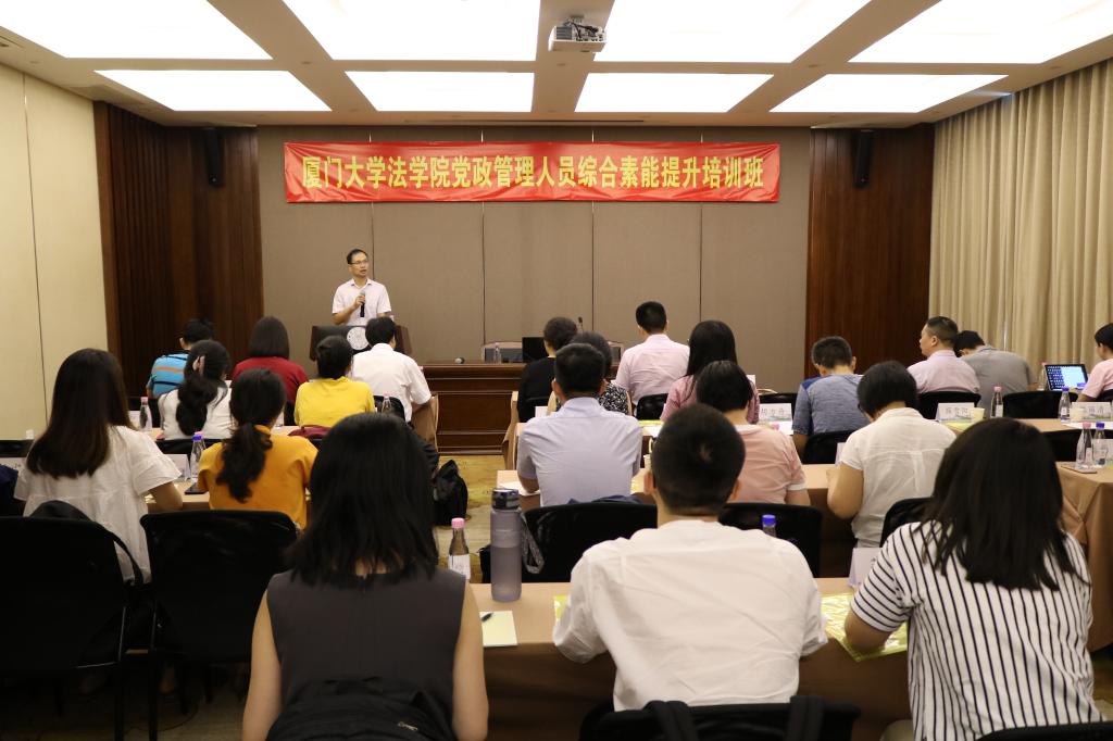 为培养造就忠诚干净担当的高素质专业化干部队伍,推动以习近平新时代中国特色社会主义思想为中心内容的理论教育更加深入、党性教育更加扎实、专业化能力培训更加精准、知识培训更加有效。进一步提升法学院党政管理人员综合素能,改进工作作风,提高服务效率,加强学院党政管理人员队伍建设。9月7日至8日,法学院党政管理人员综合素能提升培训班在翔安校区举办,法学院全体党政管理人员参加培训。开班仪式由法学院党委副书记、党校副校长郭锦星主持。
