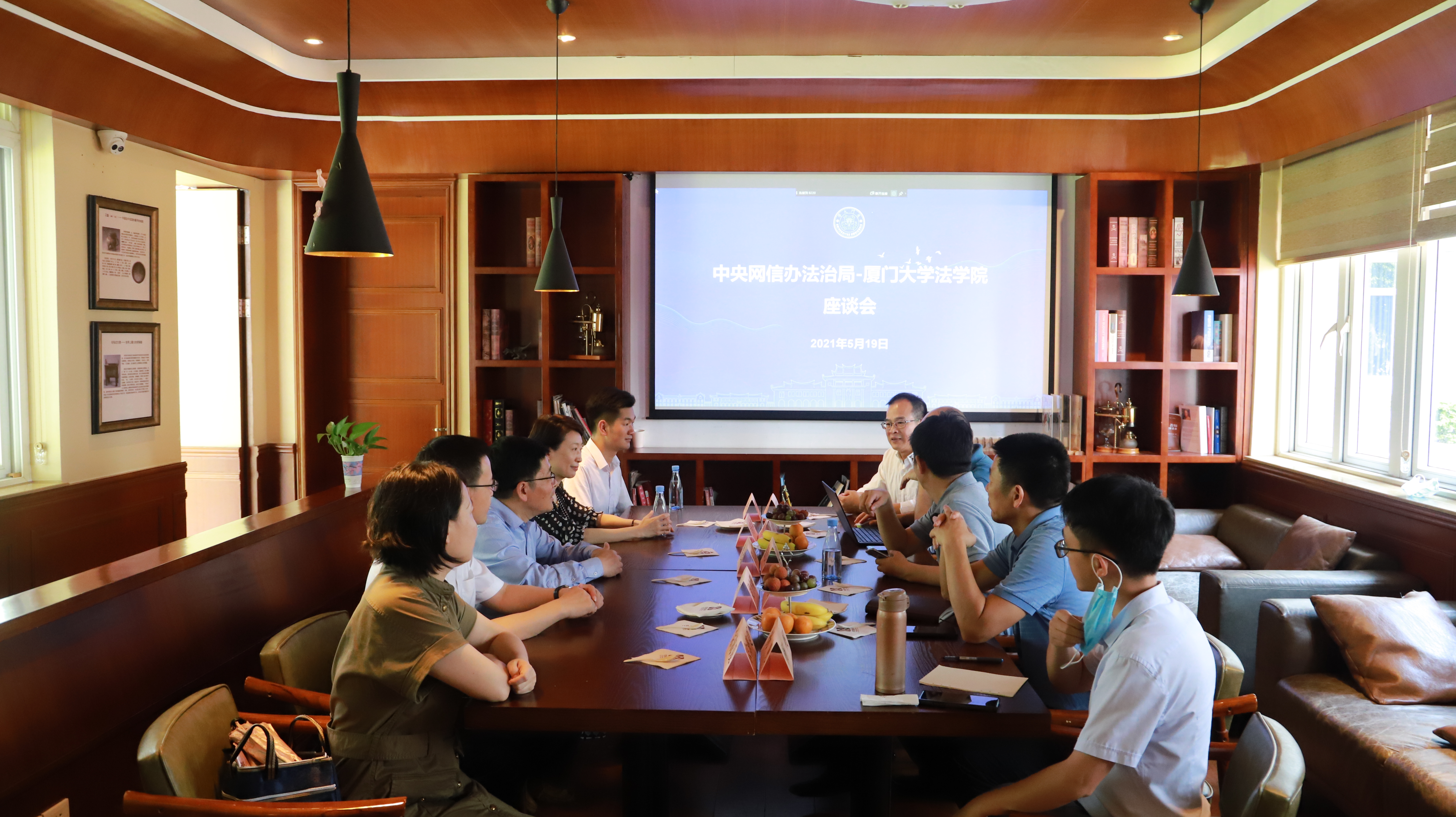 5月19日上午,中央网信办法治局副局长、一级巡视员侯云灏一行来访我院,就“网络法治建设”与学校学院领导座谈,中央网信办法治局督查处处长吴方程、干部秦绍崇、厦门市委宣传部副部长、市委网信办主任卢秀萍、市委网信办网管处处长宗海夏随行。厦门大学党委副书记徐进功、法学院党委书记许和山、副院长李国安、副院长郭春镇、助理教授杨帆出席座谈。