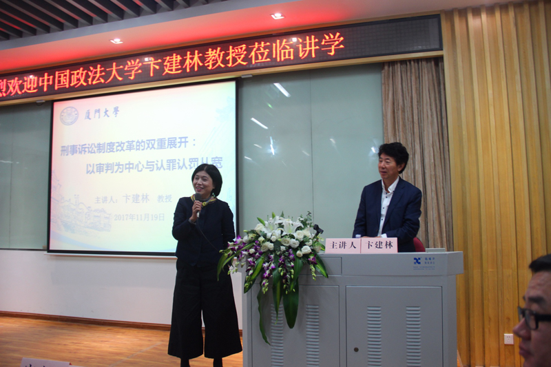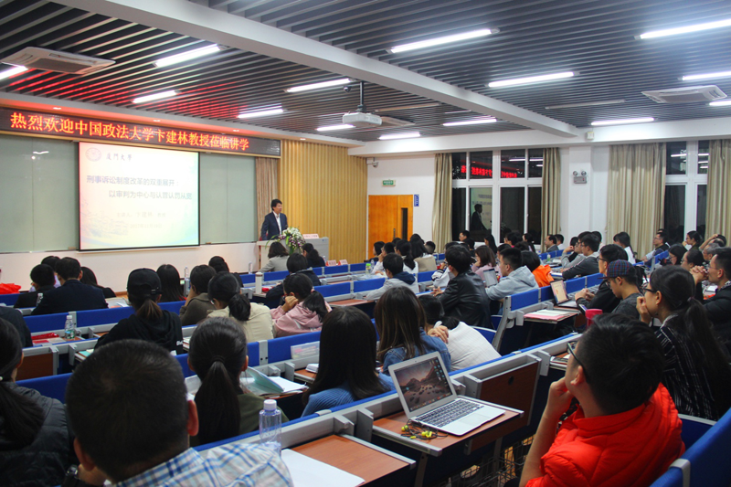 2017年11月19日晚,法学院B137教室座无虚席,我院师生满怀期待与敬仰,全神贯注地聆听来自中国政法大学诉讼法学研究院院长、中国刑事诉讼法学研究会会长卞建林教授的题为“刑事诉讼制度改革的双重展开:以审判为中心与认罪认罚从宽”的讲座。本次讲座由厦门大学法学院宋方青院长主持,副院长李兰英教授、刘学敏副教授等老师到场聆听并对讲座内容进行了评论和观点交流。