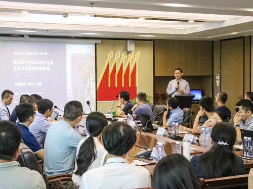 2020年10月30日15时,厦大“远大”金融法论坛(总第61期)之“民法典中的市场经济元素及其对司法审判的影响”在福建远大联盟律师事务所举行。厦大“远大”金融法论坛是厦门大学法学院金融法研究中心与福建远大联盟律师事务所学科共建项目,至今已举办61期。本次活动有幸邀请到著名法学家赵万一教授作为主讲嘉宾,并由刘志云教授担任本次讲座的主持人。厦门大学法学院刘连泰教授、肖伟教授、阳建勋副教授、周琛副教授、季烨副教授、王宗涛助理教授、王俊助理教授、史欣媛助理教授、李天相博士后等十余位老师、远大联盟律师事务所邹亿主任等律师代表、金融法中心博士生以及在厦部分西南政法大学校友参与了本次讲座。