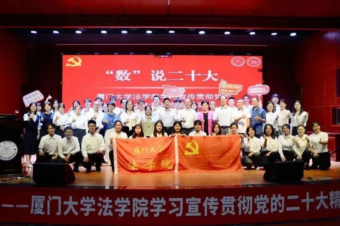 过去的一年中,学院成功举办了厦门大学党内法规高端论坛暨第三届全国高校党内法规研究生论坛,贯彻落实全国党内法规工作会议部署,围绕党内法规“以文会友,相互促进”;筹办了学习宣传贯彻党的二十大精神系列专题党课,其中“数”说党的二十大专题党课被厦门大学党建办主任、党委组织部副部长廖志丹高度肯定为“创意十足,惊喜不断”;学院所领导的厦门大学党规党纪学生研习社的党支部入选福建省新时代党建优秀案例,深刻践行“荣誉在前,使命在肩”;在厦门大学首届党务干部素质能力大赛中,学院荣获教工队一等奖,学生队三等奖,法学院党委荣获“优秀组织奖”,尽显法学院党务干部的“奋勇争先,笃行不怠”。通过兼具深度和广度的各类党建活动,法学院始终坚持用实际行动坚守初心、勇担使命,夯实党的执政根基。