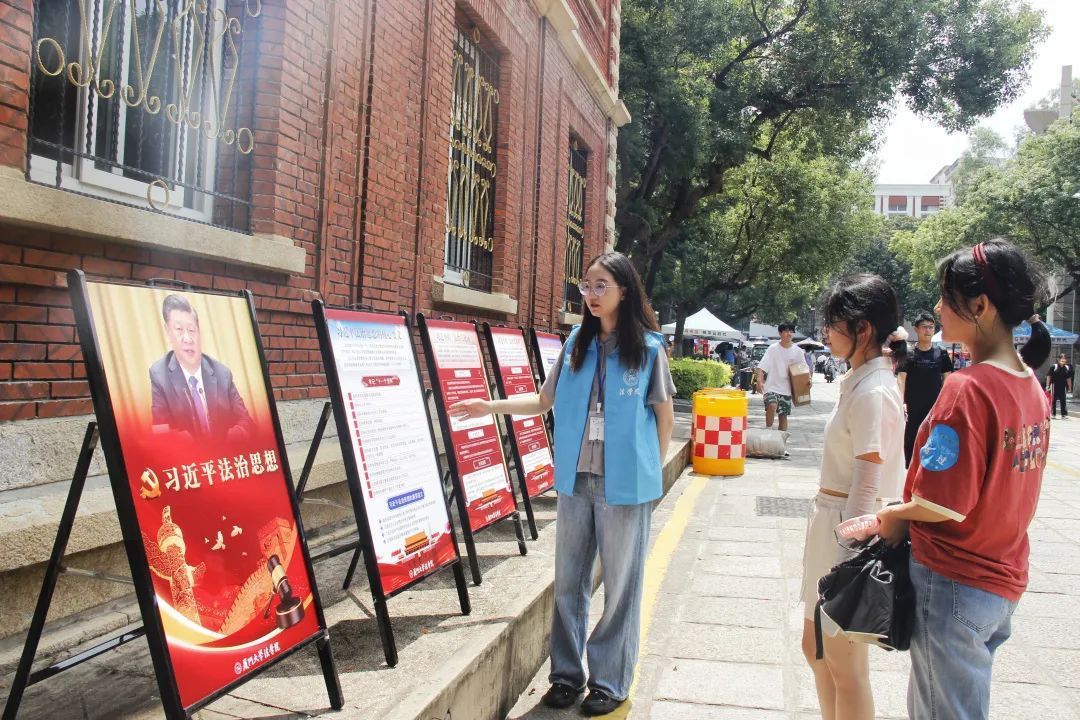 法学院年度工作中在社会实践方面同样收获了丰硕成果。厦门大学“全民反诈在行动”主题宣传月活动暨传“橙”一“厦”点亮行动在学校三家村学生活动广场顺利举行,引发全校同学的广泛参与;暑期实践异彩纷呈,法学院2022年暑期社会实践评比答辩大会,先后评比展示十余篇学生优秀暑期实践报告;9月6日,厦门大学法学院顺利迎接2022级本科新生,在迎新注册点开展了习近平法治思想主题宣传教育活动,用思想旗帜引领新生开启大学新征程。法学院将认真工作、躬身实务的思想觉悟贯彻到每一项日常工作中,以实务谋发展、以实践求真知,促进理论与实践相辅相成。