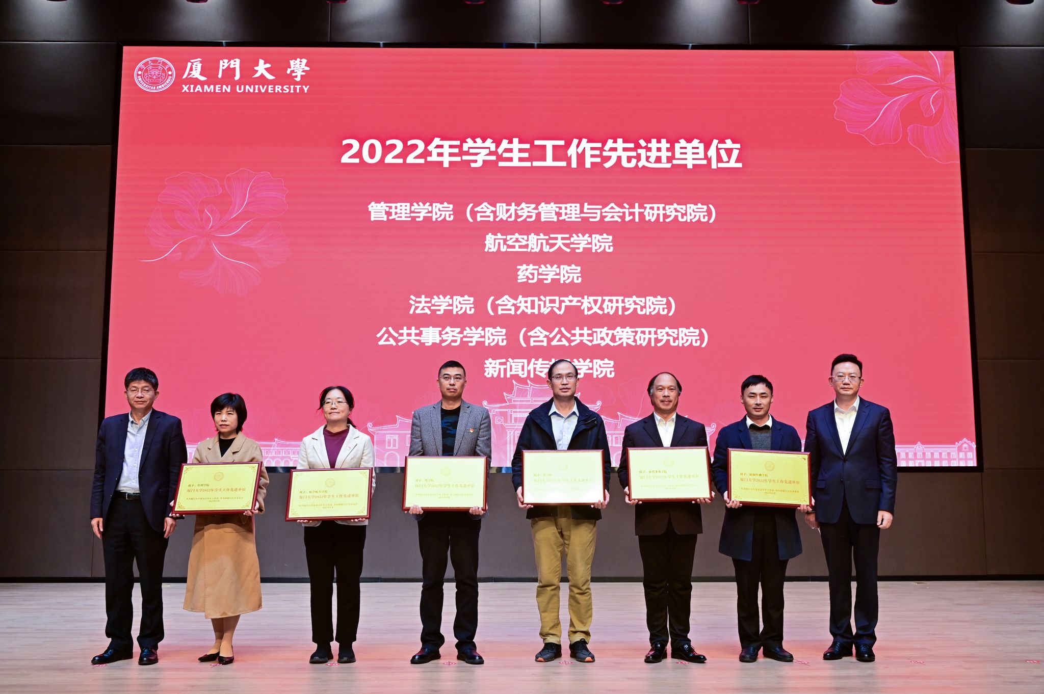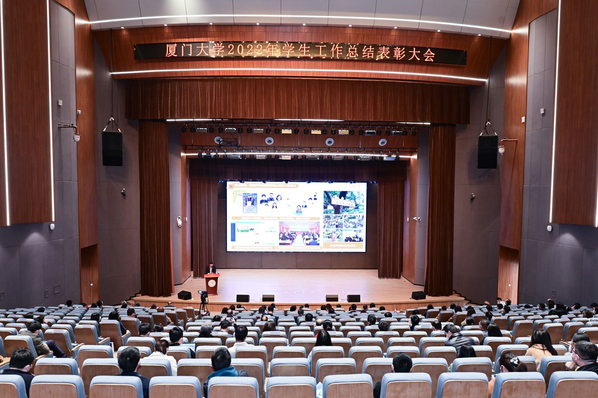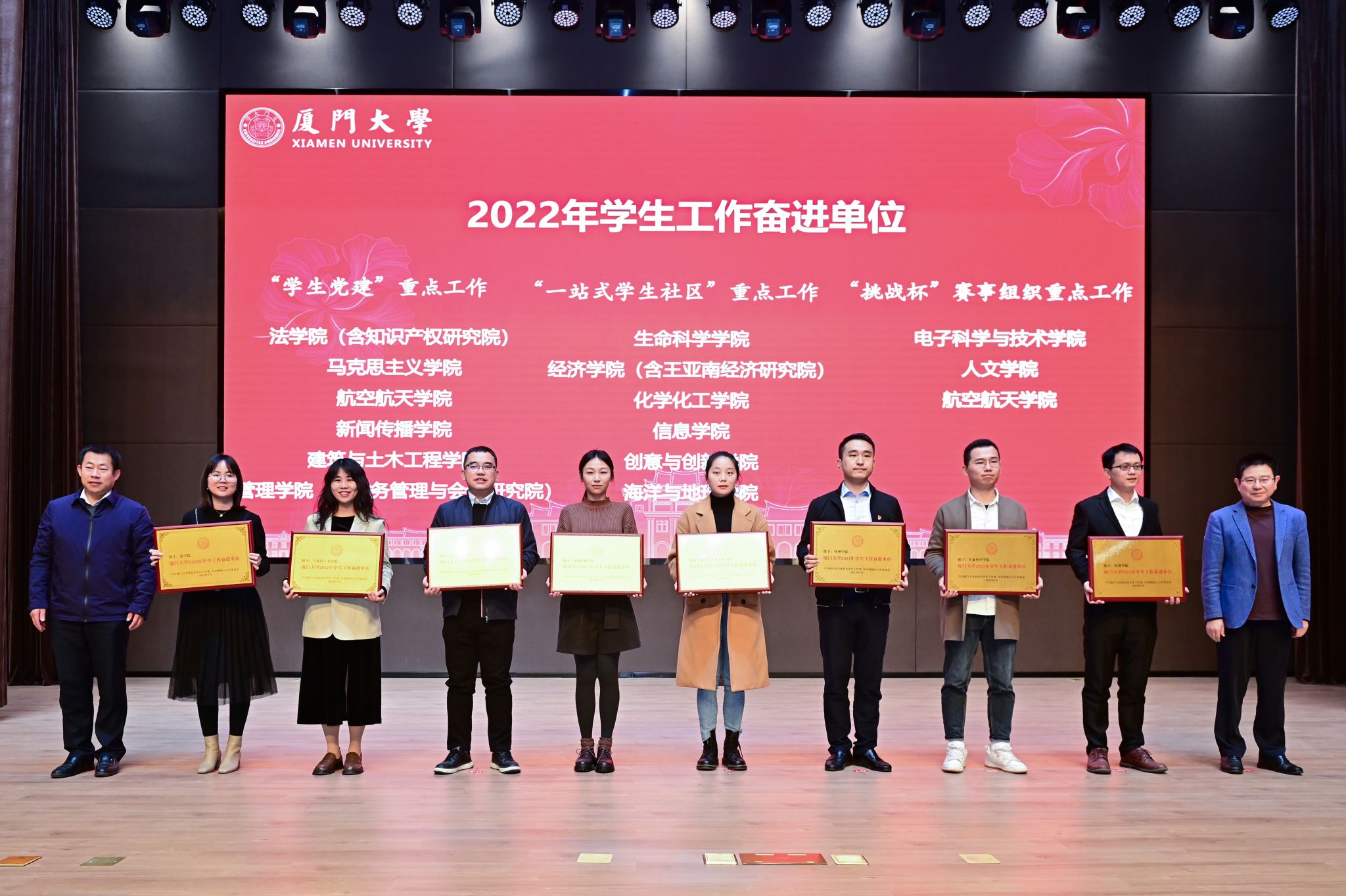 2023年1月8日,厦门大学2022年学生工作总结表彰大会于翔安校区顺利举行,大会回顾并总结了2022年学生工作的各项成就与宝贵经验,并对年度先进单位、特色单位和优秀辅导员等进行表彰。