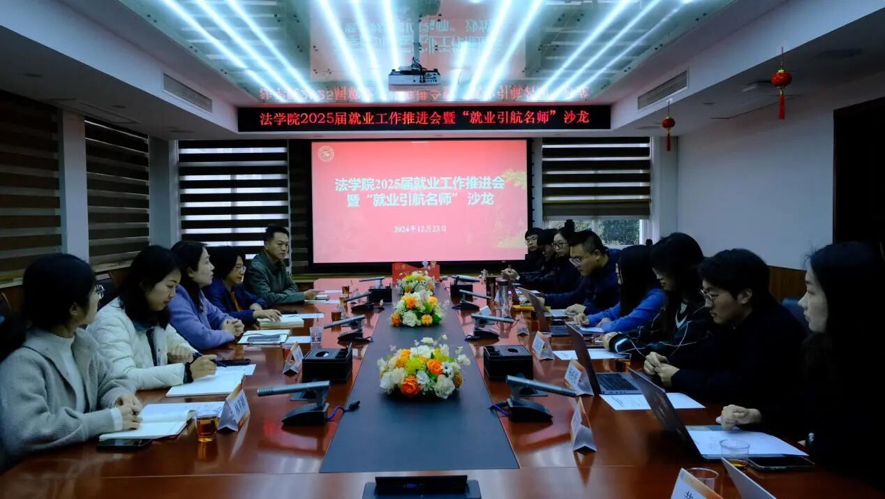 为深入学习贯彻习近平总书记关于就业工作的重要讲话精神,落实立德树人根本任务,12月23日下午,法学院召开2025届就业工作推进会暨“就业引航名师”沙龙。厦门大学首批“就业引航名师计划”立项推荐教师、法学院党委书记何丽新教授,党委副书记吴荻、张宇斌,2025届毕业班辅导员刘茜、水永生、林芊颖,2025届毕业生代表参加本次活动。