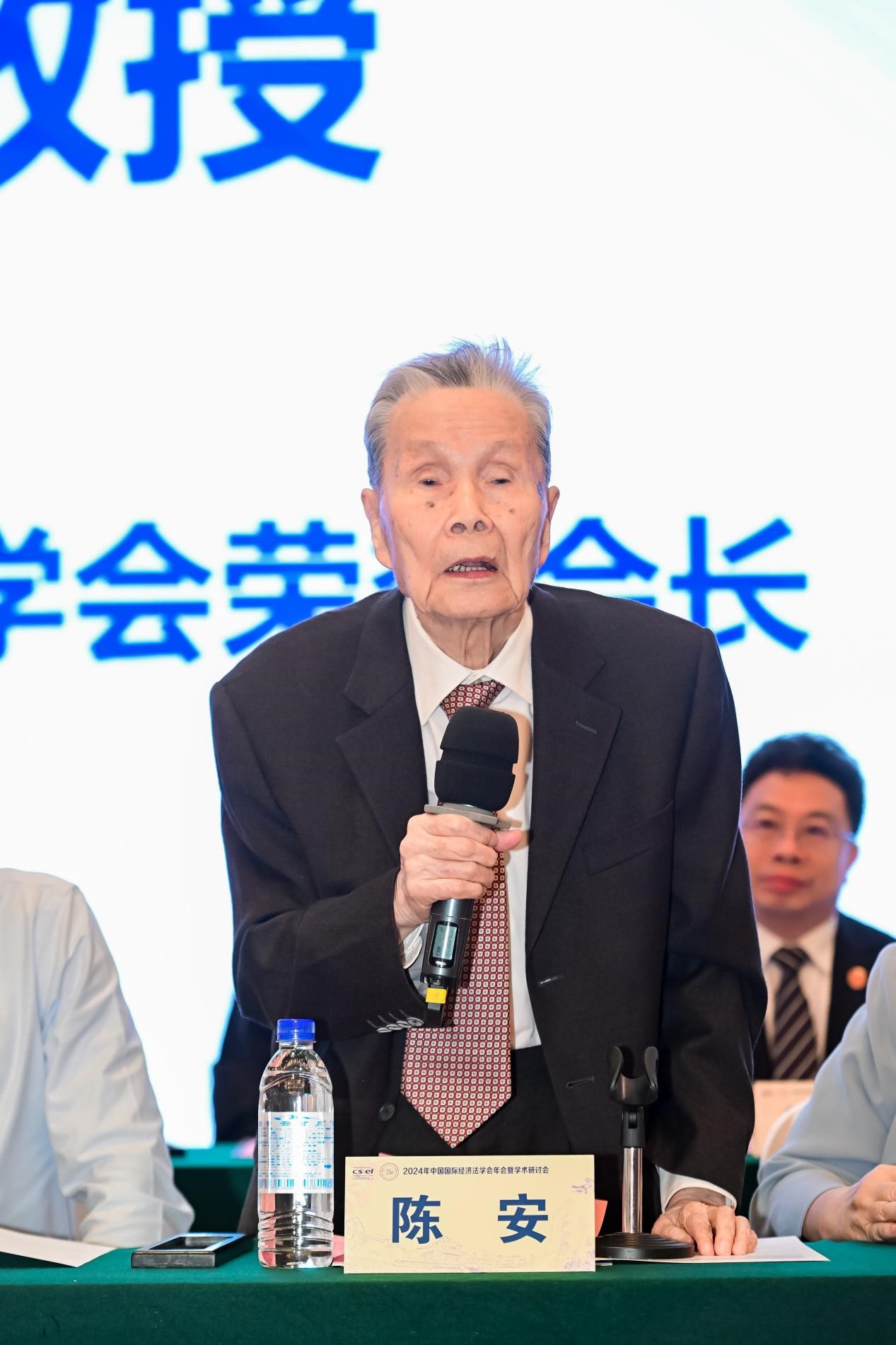 荣誉会长陈安教授是厦门大学国际经济法学科的创建人和学术带头人,也是中国国际经济法学会的创建人之一。这位95周岁的“耄耋一兵”亲临会场,首先向来自五湖四海的与会人员表示热烈欢迎和诚挚感谢。回顾中国国际经济法学会40年的风雨征程,陈安教授特别重申了“以文会友,以友辅仁,知识报国,兼济天下”的学会宗旨。他指出,学会在成立时间上虽不及成立118周年的美国国际法学会,但必将努力赶超,关键是我们有“兼济天下”的宽广胸怀。随后陈安教授特别向大家介绍了清华大学张月姣教授和中国政法大学王传丽教授。2018年,曾任WTO上诉机构主席的张月姣教授作为“对外开放法制建设的积极实践者”,荣获党中央、国务院授予的“改革先锋”荣誉称号。王传丽教授则是1984年庐山“第一期国际经济法讲习班”的学员,40年如一日,教书育人,成果斐然。