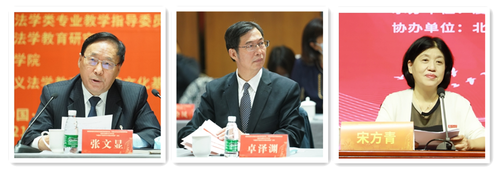 张文显发表讲话,表示新一届理事会和常务理事会将不负法学教育界的重托,深入推进习近平法治思想“三进”工作,推进法学教育与法治建设深度融合,为全面推进依法治国,加快法治强国建设做出应有的贡献。