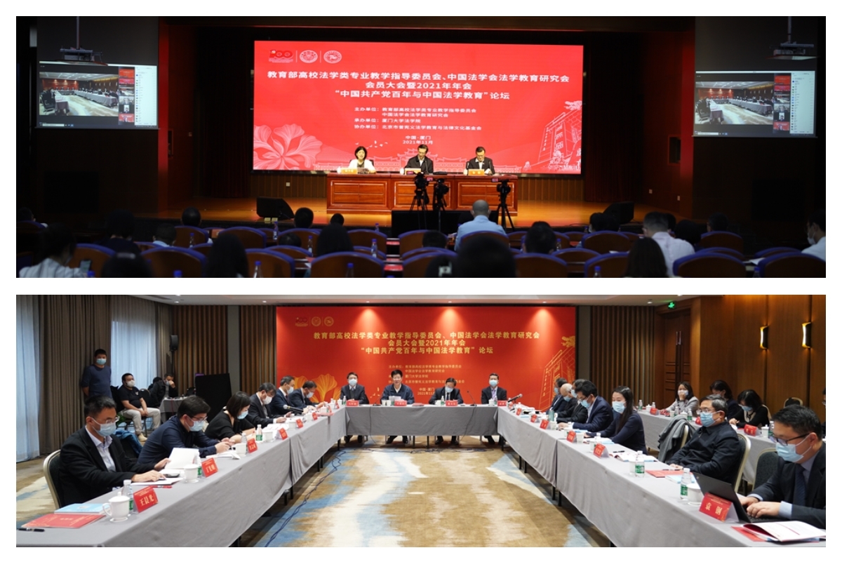 2021年11月6日,教育部高校法学类专业教学指导委员会、中国法学会法学教育研究会会员大会暨2021年年会“中国共产党百年与中国法学教育”论坛召开。本次年会由教育部高校法学类专业教学指导委员会(以下简称“教指委”)和中国法学会法学教育研究会(以下简称“研究会”)共同主办,由厦门大学法学院具体承办。受疫情影响,本次年会调整为线上线下相结合的形式,主会场设在厦门大学法学院,北京分会场设在北京友谊宾馆,其他嘉宾通过腾讯会议在线参会。