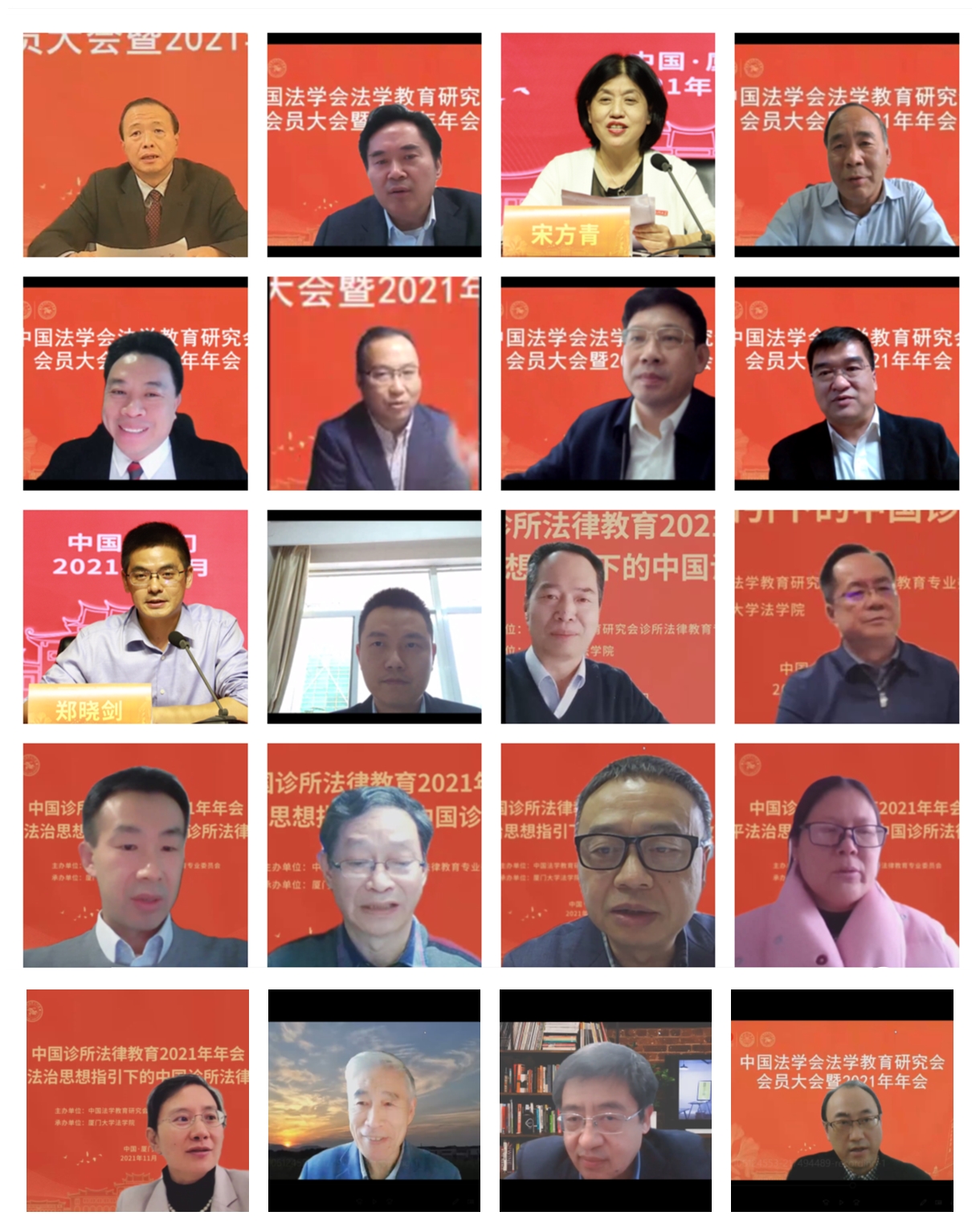 投票期间进行主题报告环节,第一阶段由中国人民大学法学院韩大元教授主持,第二阶段由华东政法大学校长叶青教授主持。西北政法大学副校长王健教授、华东政法大学原校长何勤华教授、清华大学法学院院长申卫星教授、法学教育成果奖获奖代表、北京大学法学院党委书记郭雳教授、优秀教务工作者参评代表、厦门大学法学院教学秘书陈丽清分别以“中国共产党百年与中国法学教育回顾”“新中国法学教育的演进与中国法学教育研究会的使命”“习近平法治思想与法学教育改革的三个面向”“新发展时期的涉外法治人才培养”“担当育人使命、提供一流服务”为议题作主题报告。