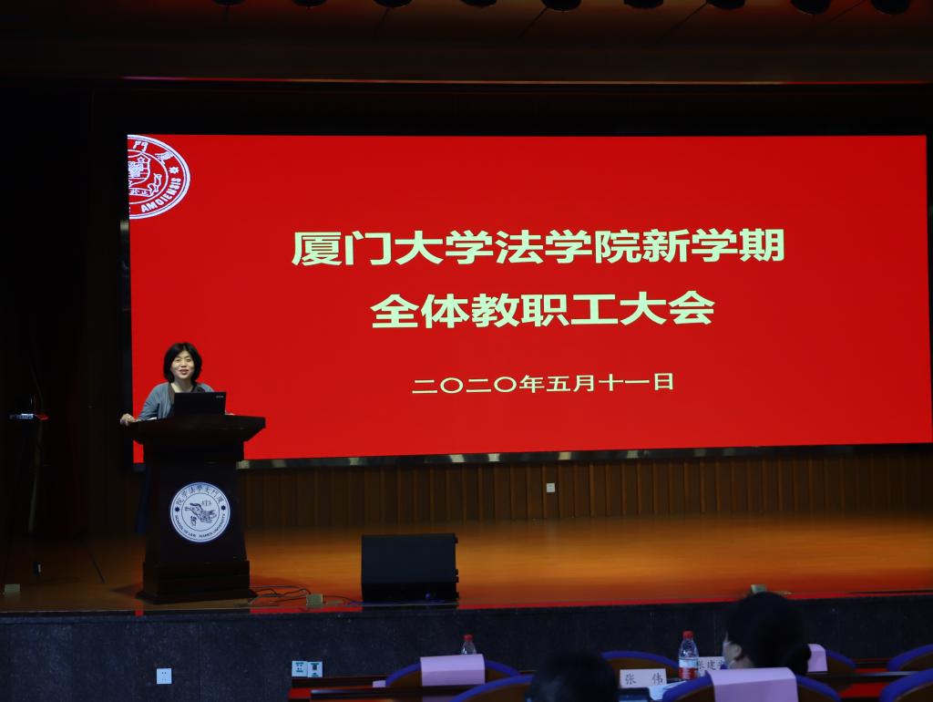在我校即将复学复课之际,学院召开此次大会,极大鼓舞了师生昂扬斗志和奋进状态,推动了教学科研有序地回归正轨。学院将以本次大会为新起点,推进疫情防控和学院建设两手抓、两手硬,为建设世界一流法学院,实现厦门大学“两个一百年”建设做出更大的贡献。