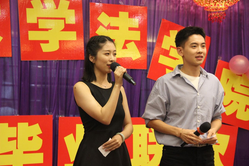 高斌老师一首《一路上有你》深情款款,满含对同学们的不舍与祝福,也表达着自己对共度十四载青春的法学院的感谢与不舍,何丽新老师代表学院上台祝福高斌老师前程似锦。