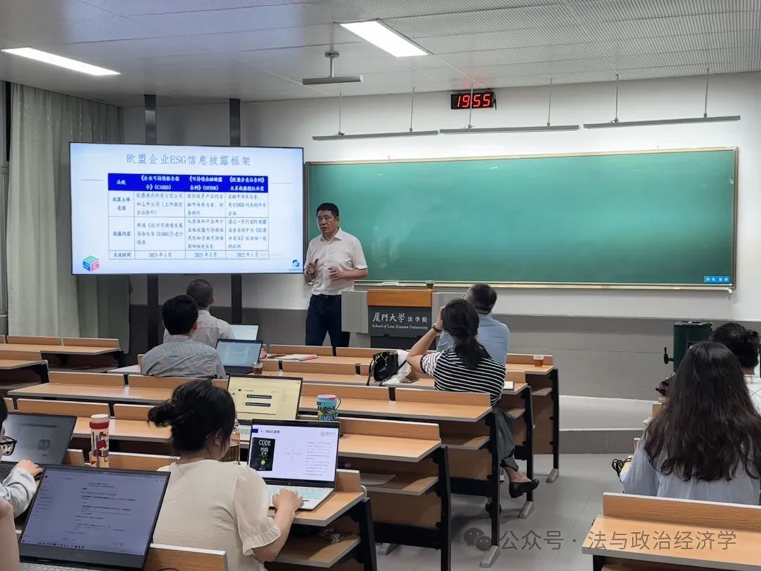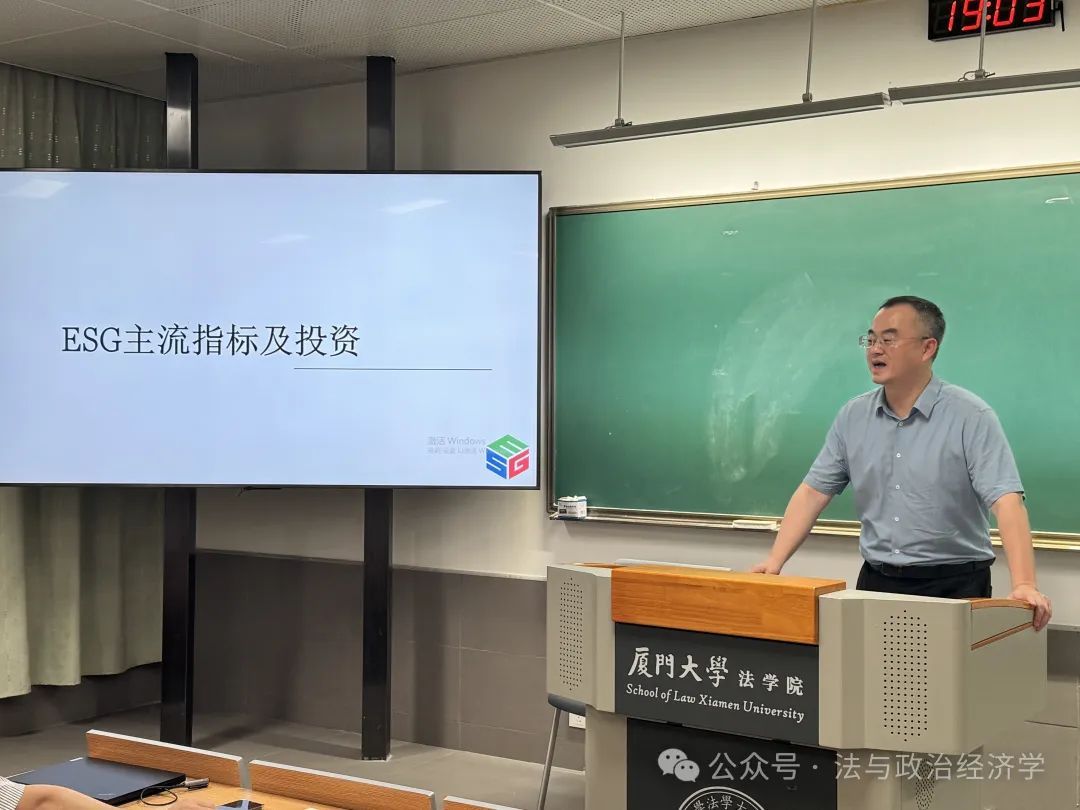 2025年5月15日,信实“青椒会”学术论坛第90期暨“数字法沙龙”第五期在厦门大学法学院A201教室成功举办。本次讲座主题为“ESG主流指标及投资:制度及产品”,特别邀请到同济大学教授、博士生导师倪受彬老师担任主讲嘉宾,厦门大学法学院数字法与交叉法学教研中心主任吴旭阳老师担任主持人,周琛老师、李天相老师、毛海栋老师担任与谈人。法学院本硕博数十名学生到场聆听学习。