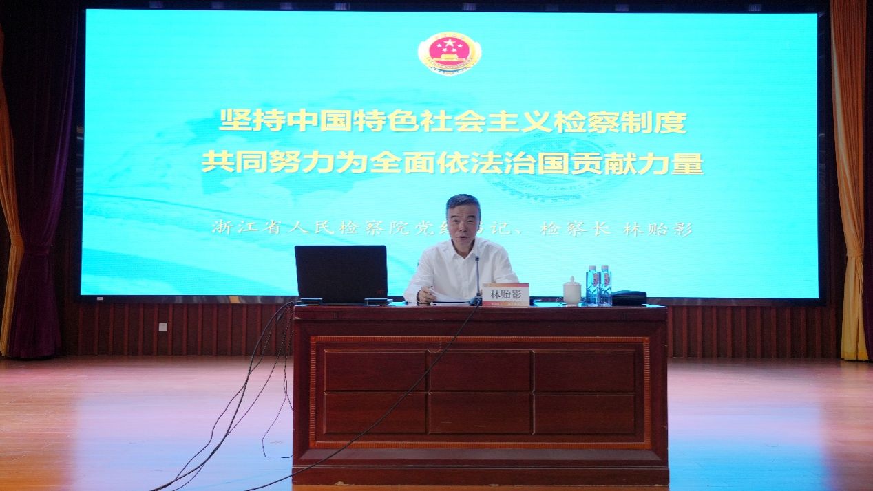 2025年9月22日15:00,南强学术讲座(第1368讲)在厦门大学法学院模拟法庭顺利举行。作为厦门大学最高层次的学术讲坛,本次南强学术讲座由浙江省人民检察院党组书记、检察长,二级大检察官林贻影担任主讲嘉宾。他以“坚持中国特色社会主义检察制度,共同努力为全面依法治国贡献力量”为题,为现场师生带来了一场精彩的学术报告。厦门大学党委常务副书记林东伟出席讲座并致辞,法学院党委书记何丽新教授主持讲座,法学院师生共百余人到场聆听演讲。