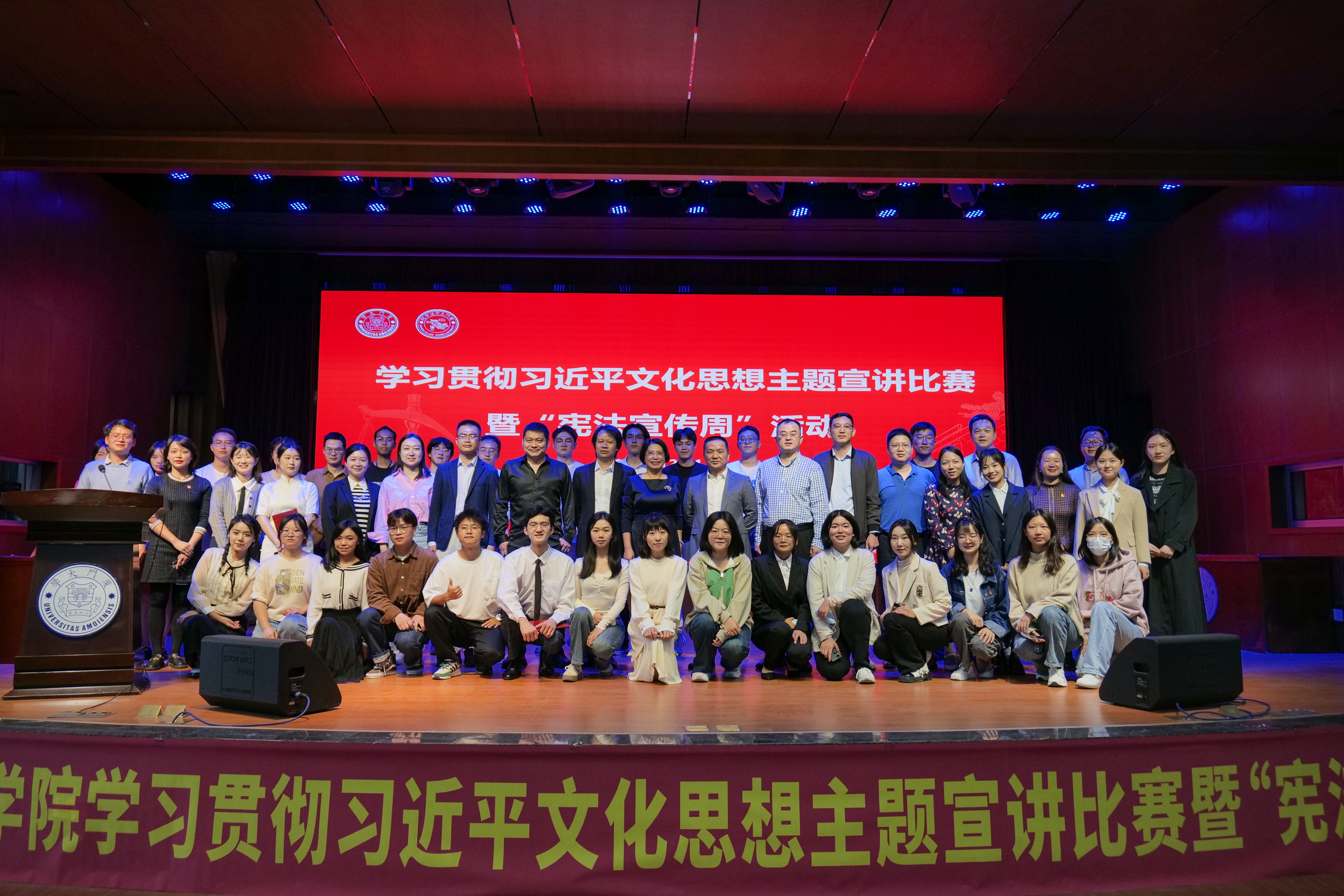 法学院党政领导、参赛队伍指导教师、党务秘书、辅导员、各学生支部党员代表,厦门大学第26届研究生支教团全体成员参加活动。